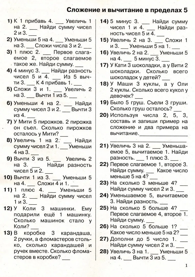 Устный счет в 1 классе