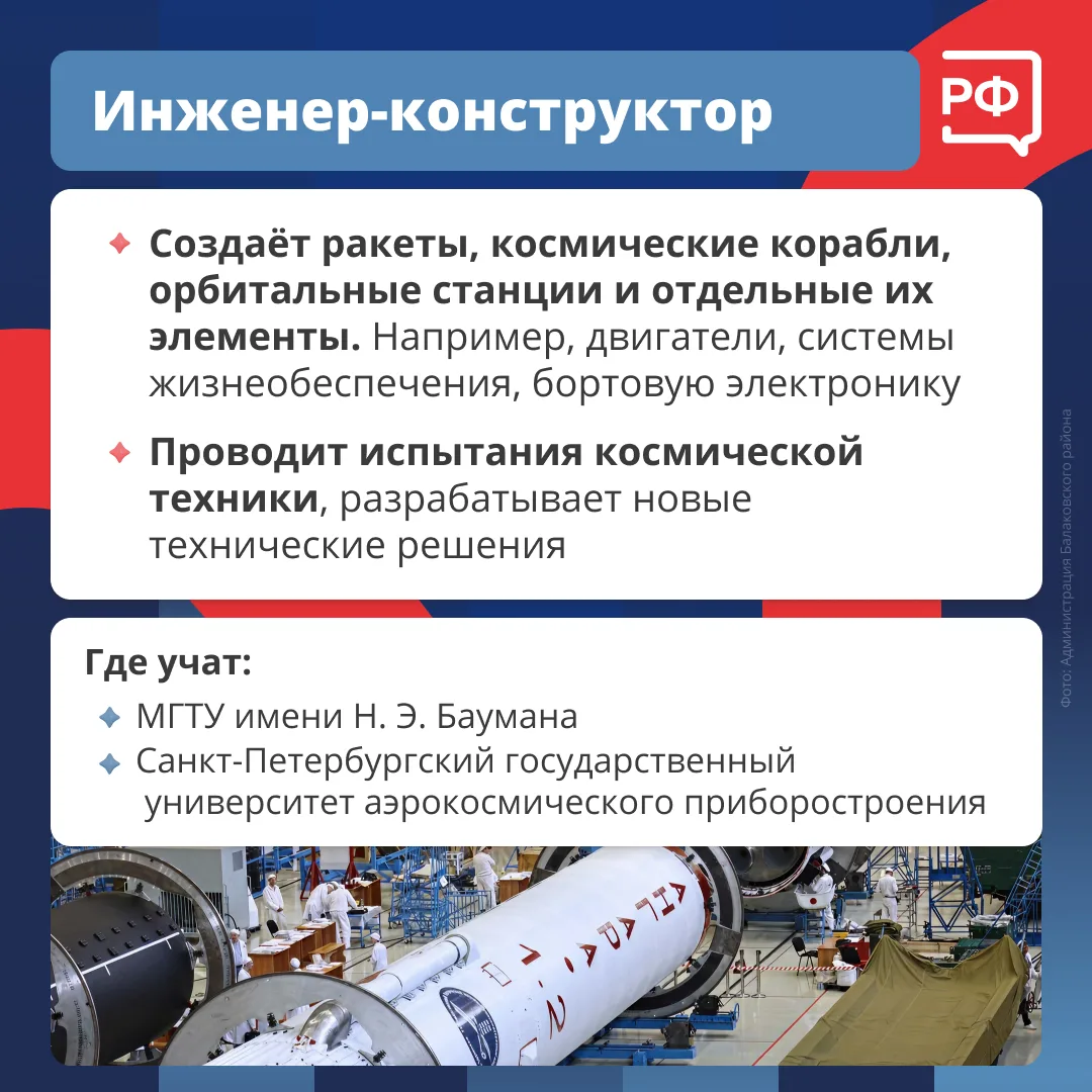 Полёты в космос были бы невозможны без конструкторов, робототехников, специалистов по бортовому оборудованию и многих других специалистов инженерного профиля.