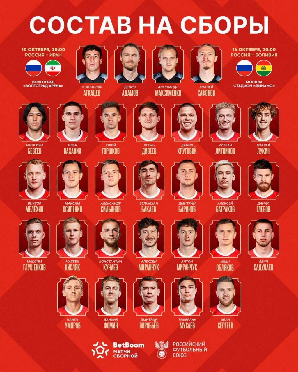 ⚡️🇷🇺 Состав сборной России на октябрьские матчи против Ирана и Боливии