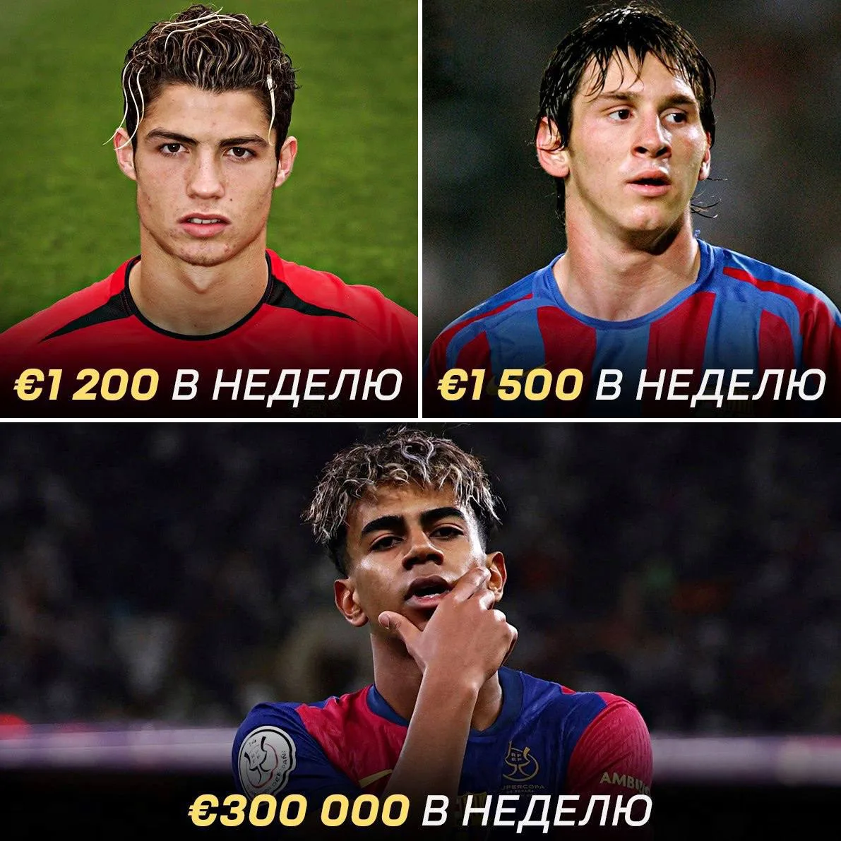 🤯 Ямаль в 18 лет зарабатывает в 150-250 раз больше, чем Роналду и Месси в этом же возрасте