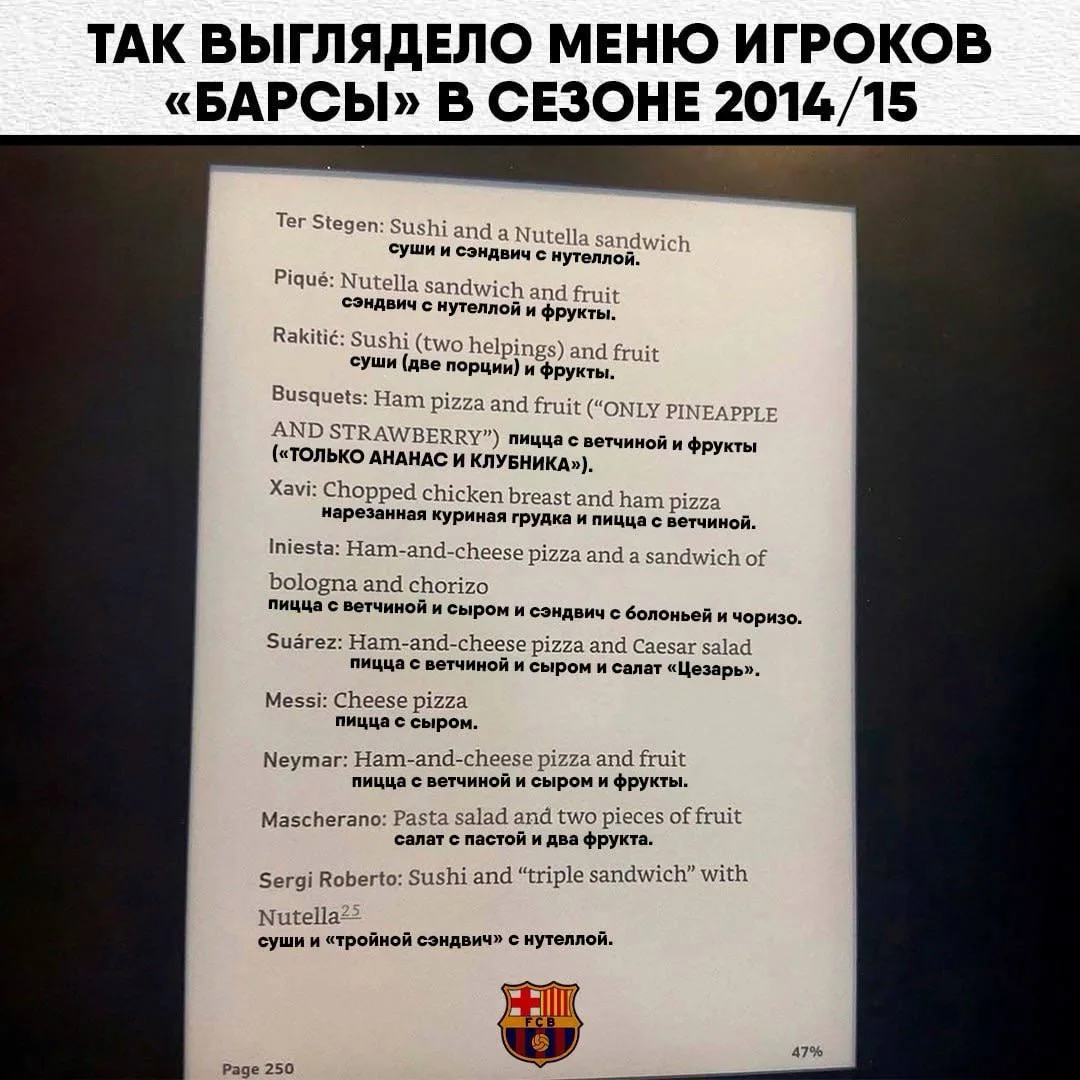 🍔 В сеть слили меню игроков «Барселоны» в сезоне 2014/15