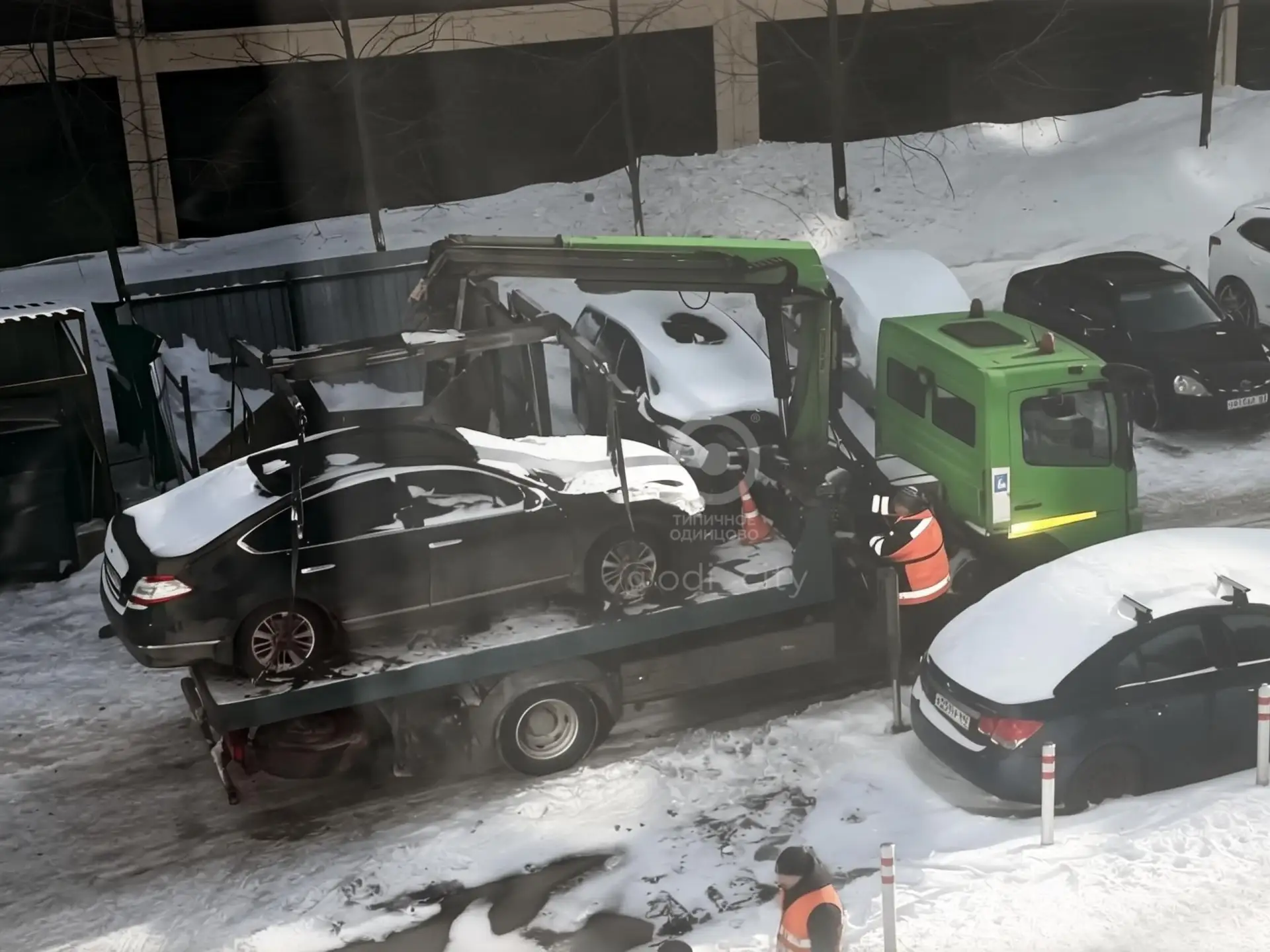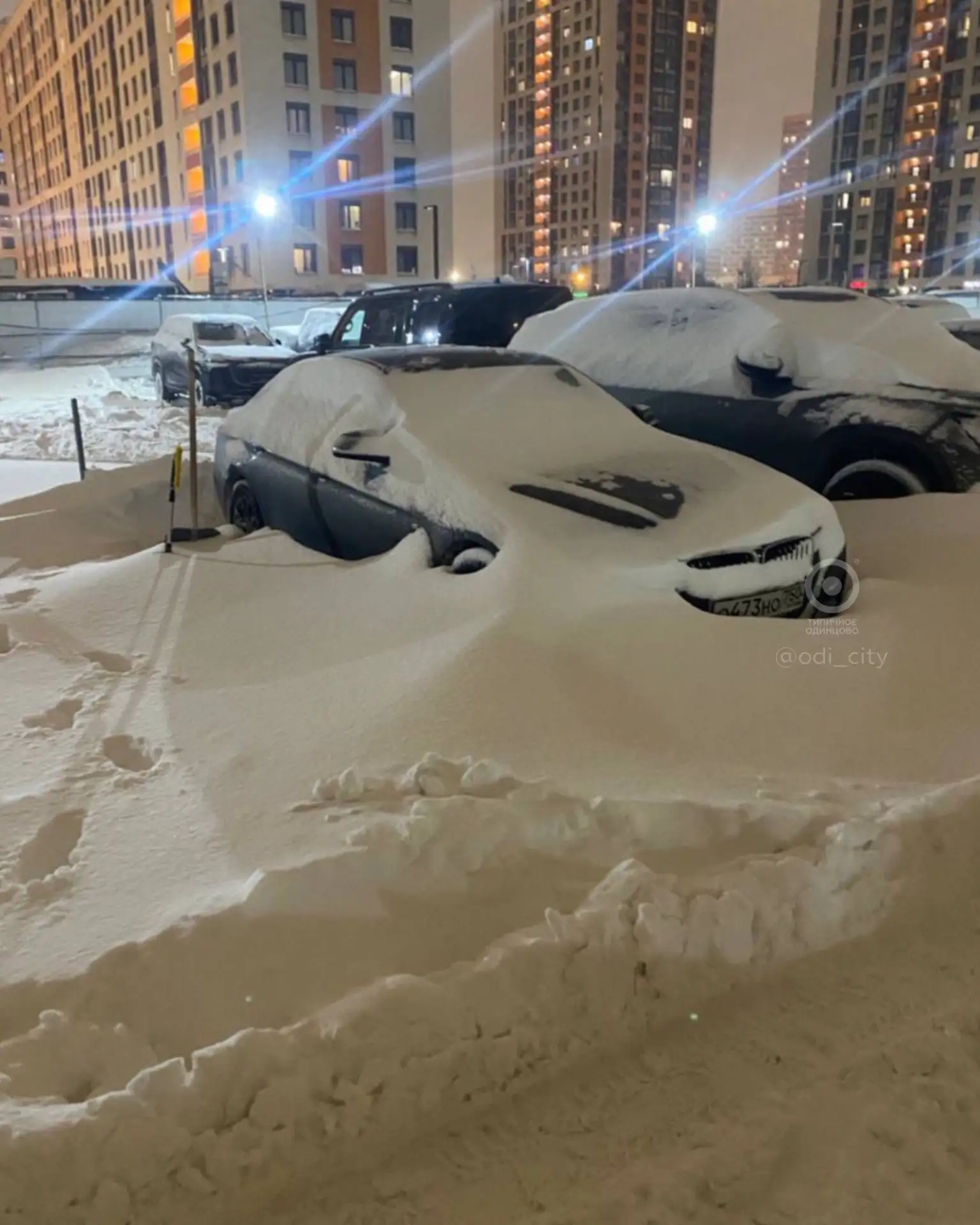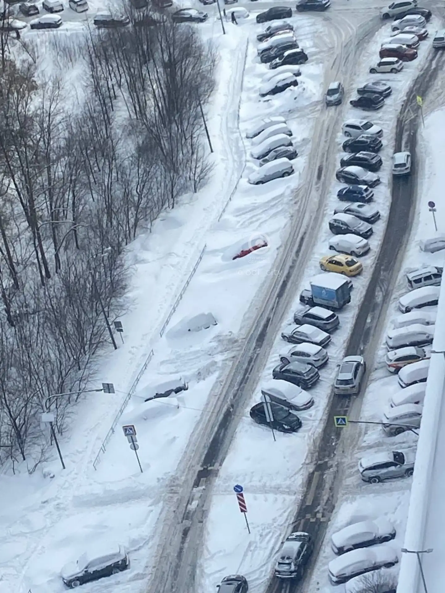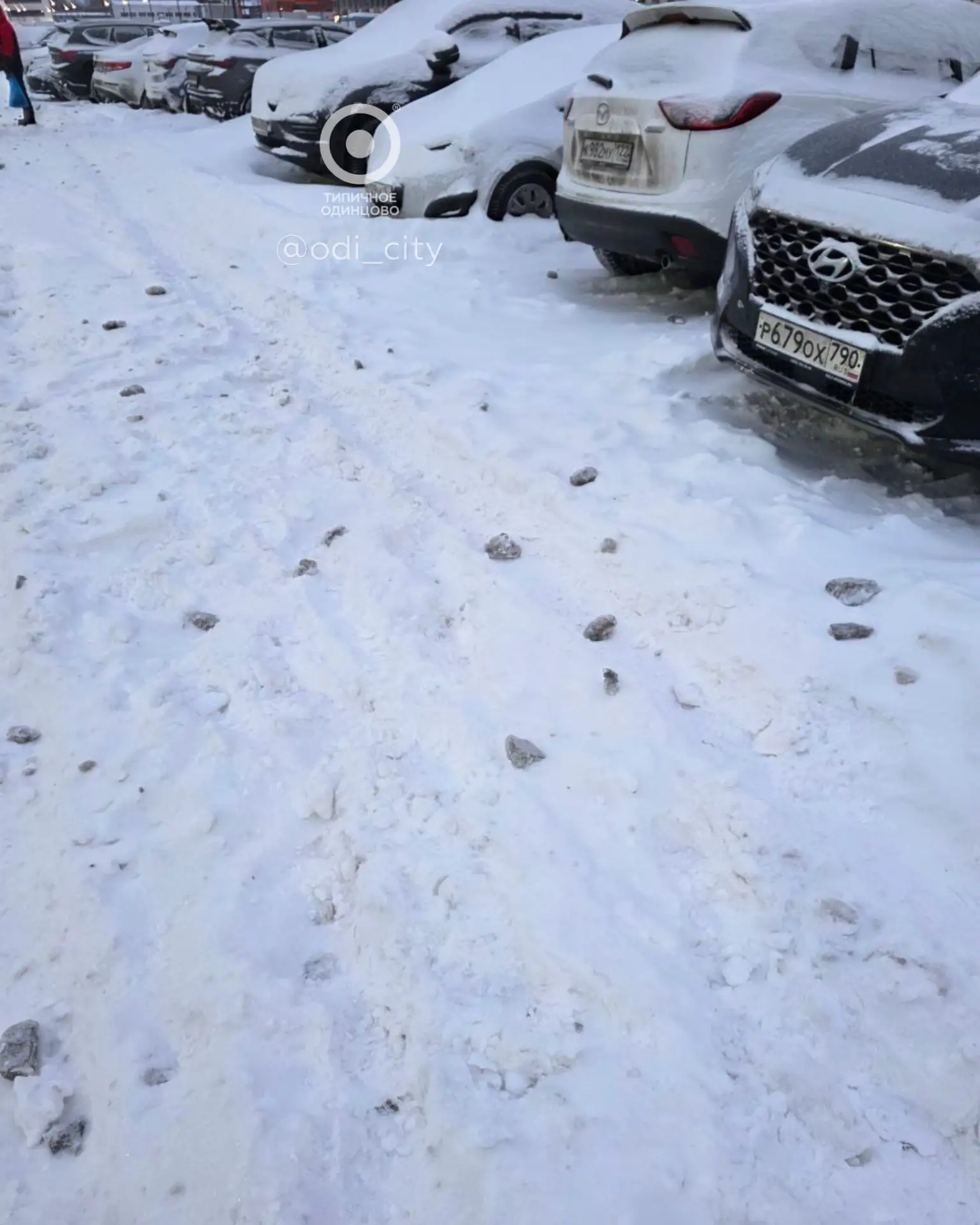 История повторилась вновь спустя два года: в ЖК «Одинцово-1» десятки машин пострадали из-за уборки снега на Минском шоссе