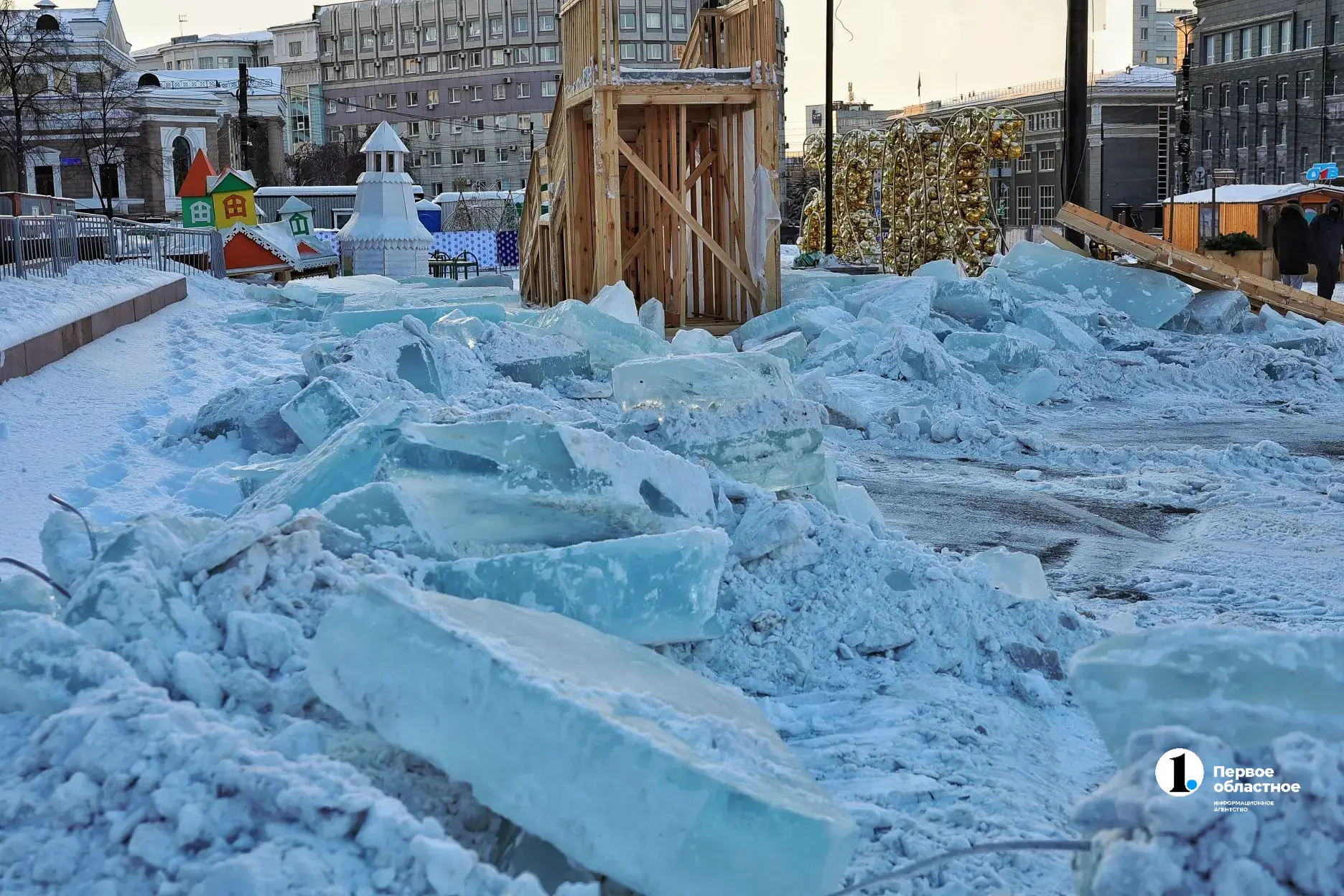 🚜Прощаемся со сказкой: в Челябинске сносят ледовый городок на площади Революции