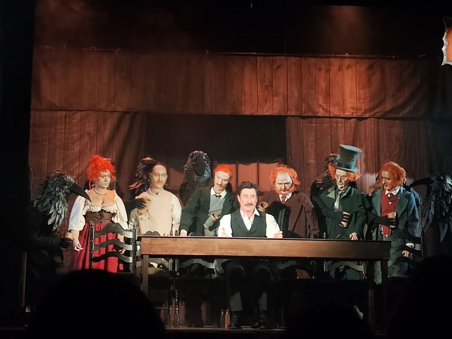 🌌 Во-вторых, космически красивое визуальное оформление, полное мистики! Проекции, костюмы, куклы (пугающе живые в своей (не)человеческой правдивости, и все – рыжеволосые), свечи, фантастические переходы, и конечно... вороны, вороны, вороны... как извечный символ и образ, который сопровождает писателя Эдгара По. Они кружат, наводят морок. Этот танец ворон повторяет природу... и цикл нашей жизни. Он поднимает в воздух, как пыль, исписанные листы бумаги с рассказами и всё то, что мы любили, на что надеялись, за что боролись. И не оставляет нам иного, кроме как найти свет, чтобы выйти из замкнутого круга и спастись. И написать новую историю.
