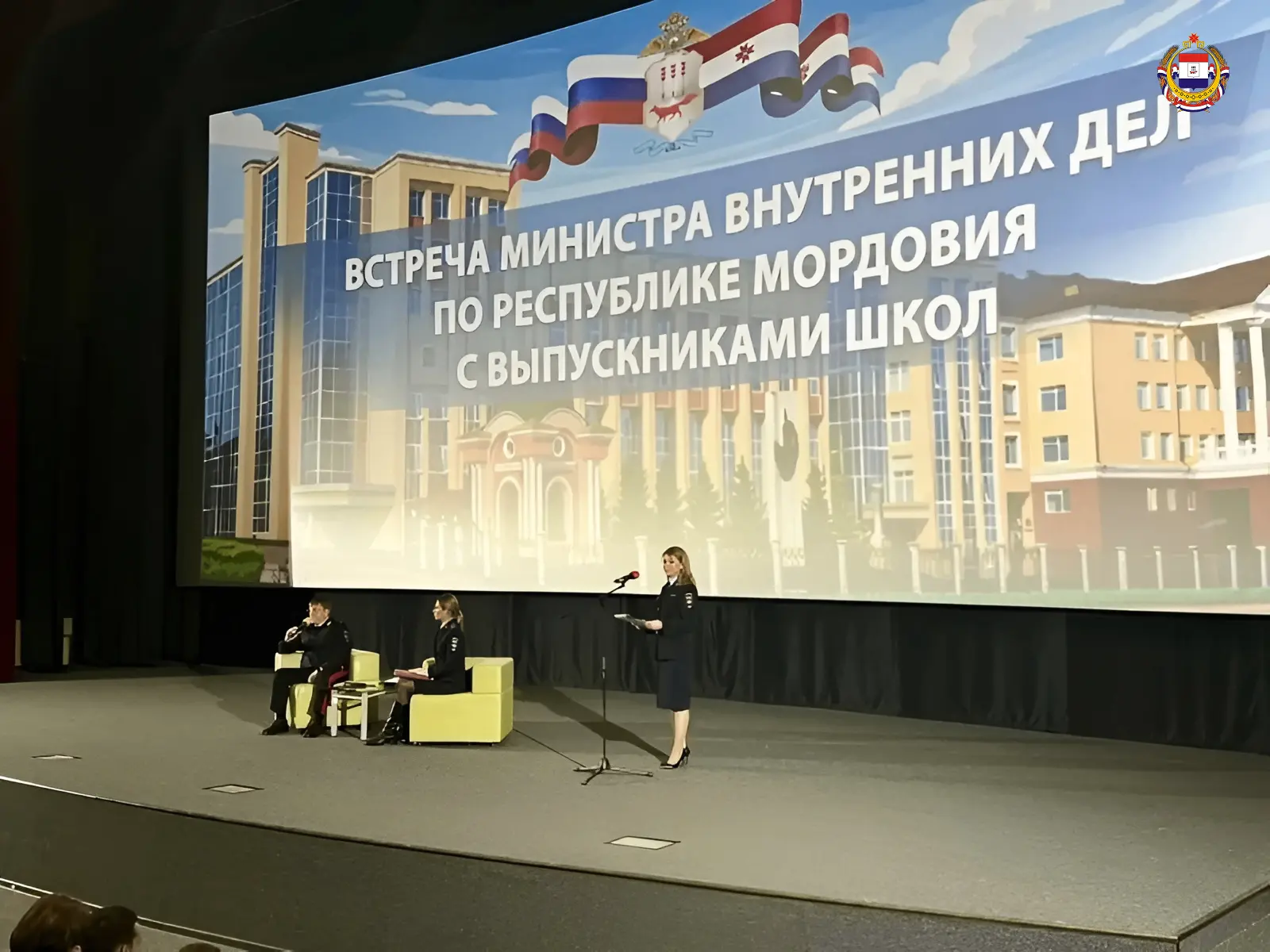 Министр внутренних дел по Республике Мордовия, генерал-майор полиции Юрий Поляков встретился со старшеклассниками Саранска в кинотеатре «Россия».