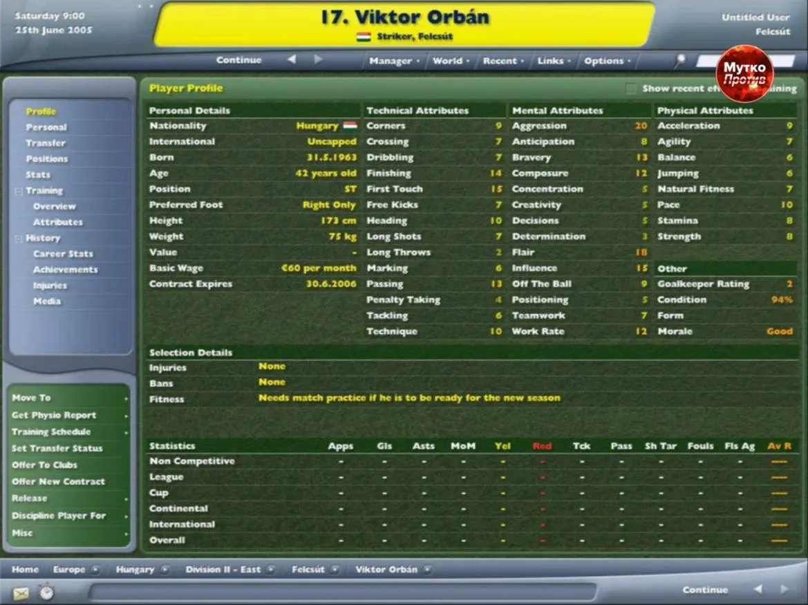 Любопытный факт из начала нулевых — в Football manager 2006 можно было купить в свою команду некоего Виктора Орбана. Да, сейчас этот Орбан — премьер-министр Венгрии.