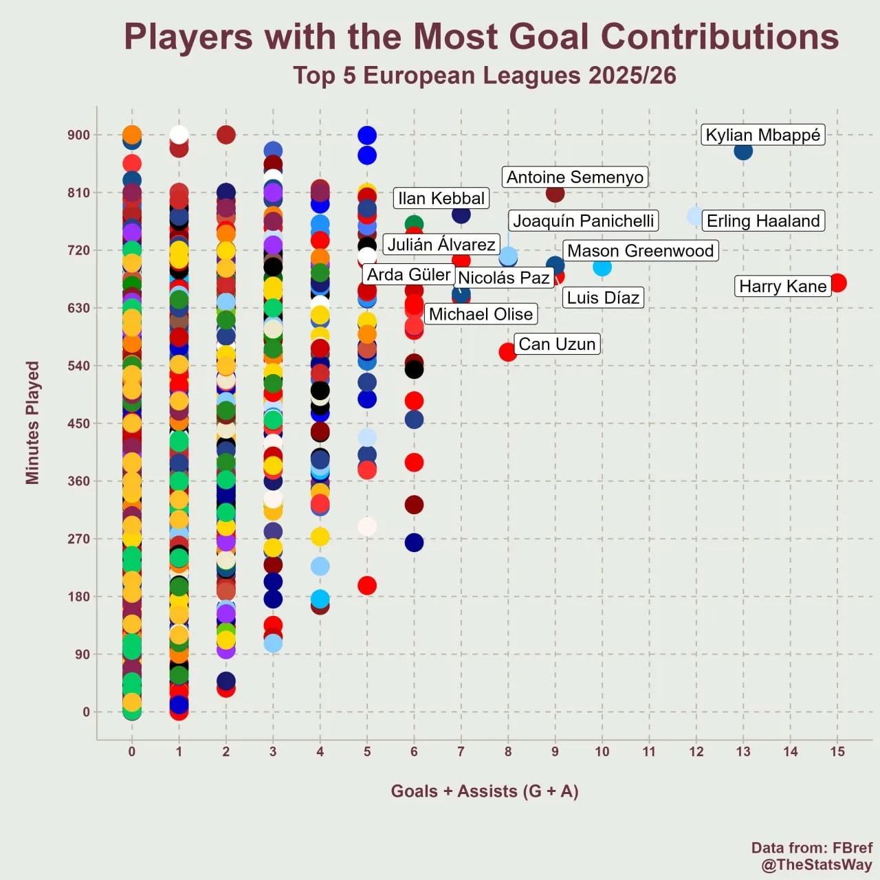 А вот первая тройкапредсказуема. Трио главных форвардов планеты сейчас набрало реактивные обороты: штампуют голы и отдают голевые почти в каждом матче, причем вне зависимости от турнира. На каждое свое голевое действие Килиан Мбаппе тратит в среднем 67 минут, Эрлинг Холанд — 65, а Харри Кейн — 45.