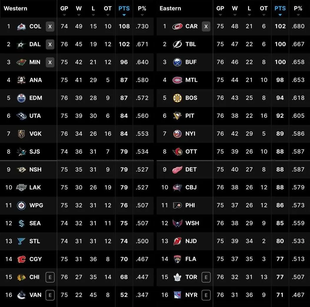 В восточной конференции НХЛ началась настоящая заруба за выход в плей-офф. Сразу 4 команды, занимающие с 7 по 10 место, имеют практически одинаковое количество очков (88 и 89). Еще на пару-тройку очков отстают от зоны плей офф «Филадельфия» и «Вашингтон».
