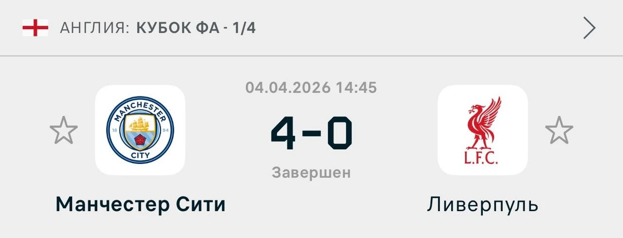 «МанСити» катком проехался по «Ливерпулю» в 1/4 Кубка Англии.
