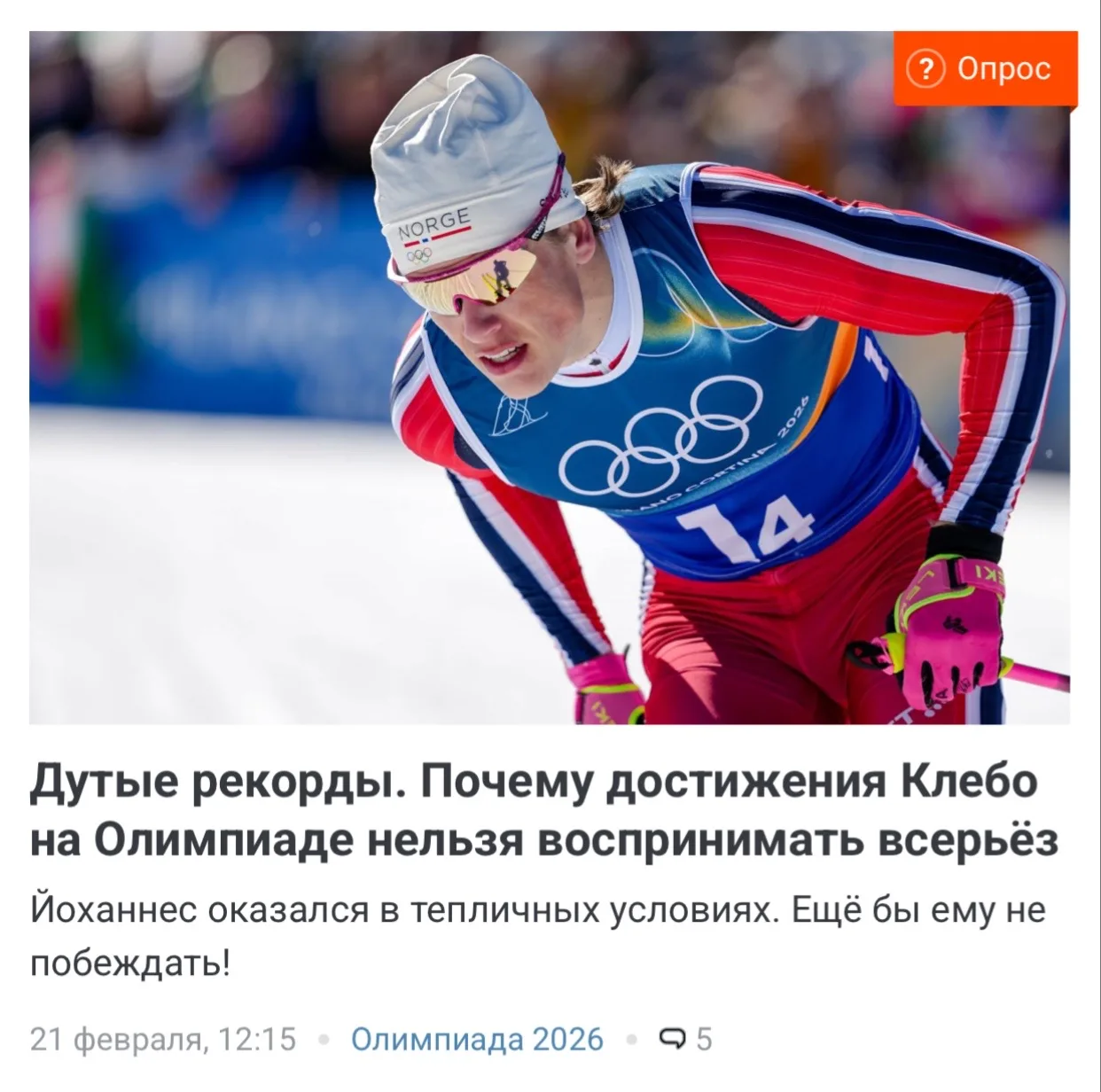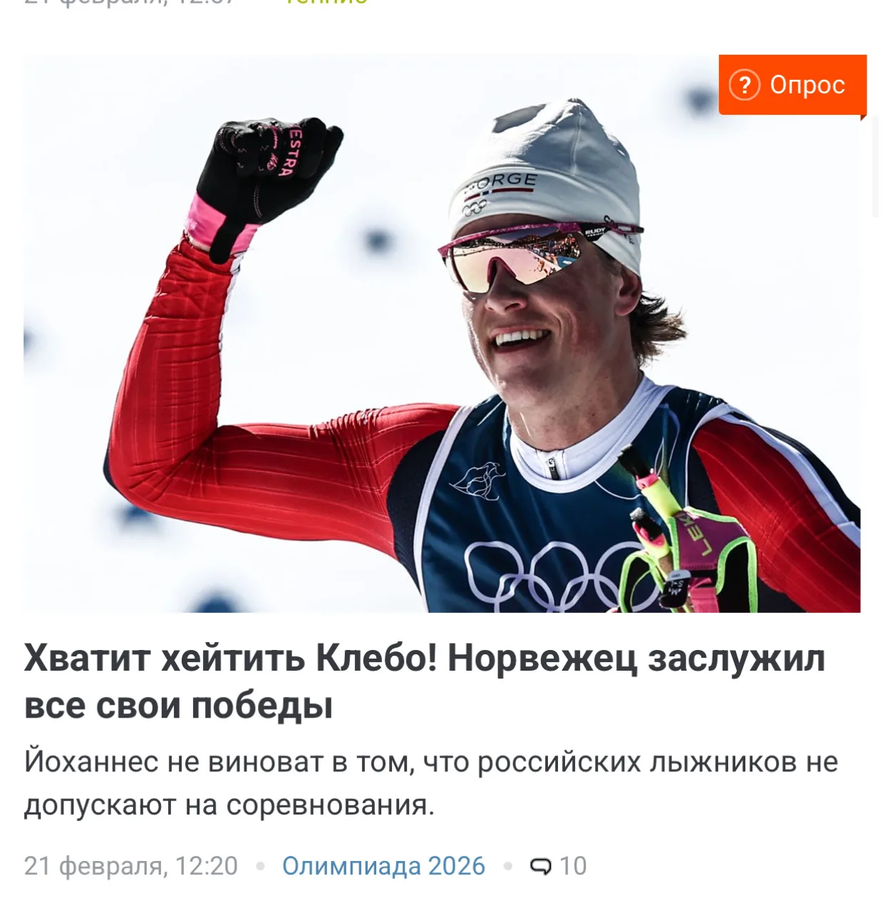 «Ни гандонов, ни смартфонов» — это краткое резюме Олимпиады в Милане от российского лыжника Савелия Коростелева.