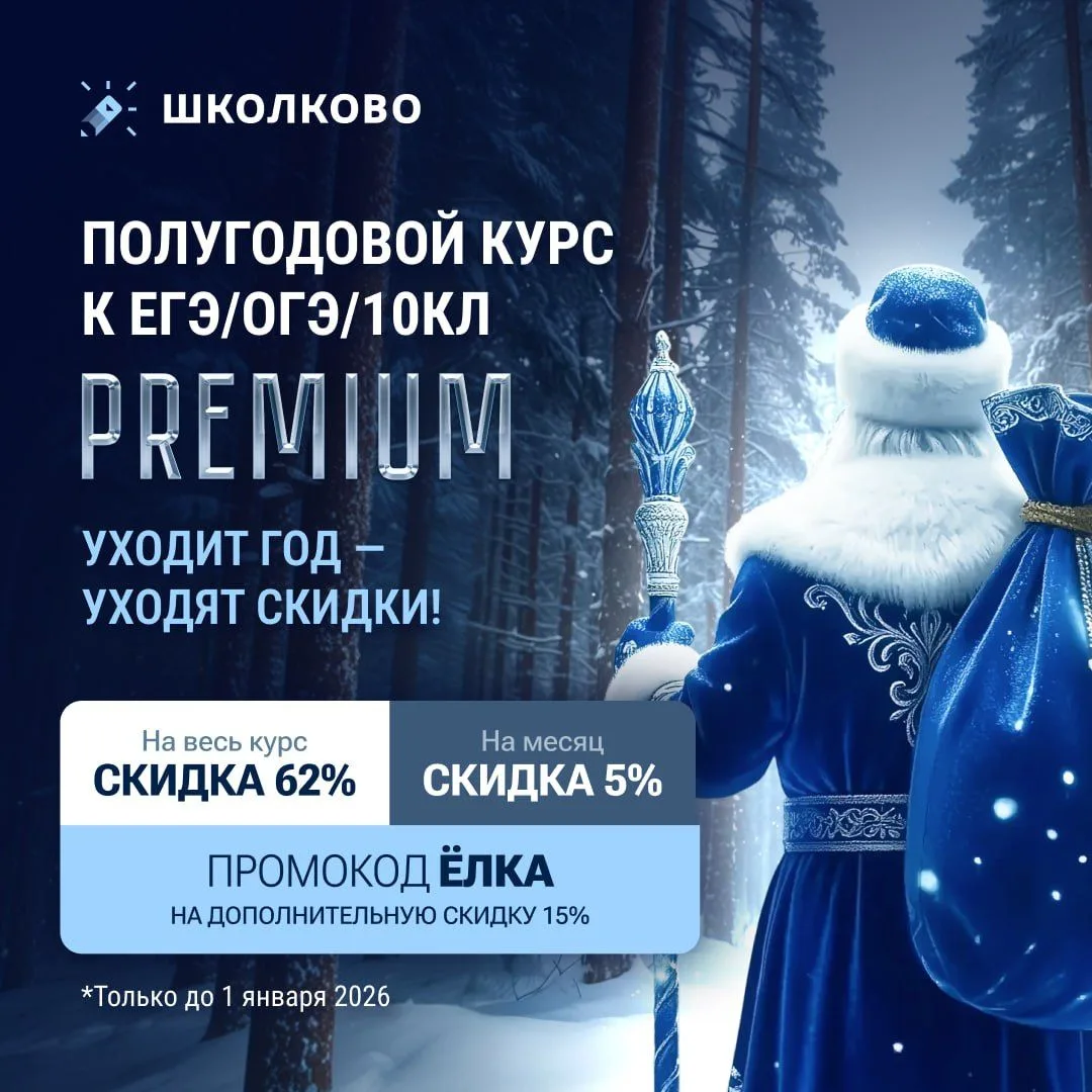 🎄дополнительные 15% по промокоду 🌟ЁЛКА🌟Уходит ГОД - уходят СКИДКИ! Последняя возможность забрать Полугодовой курс подготовки к ЕГЭ/ОГЭ 2026 💎PREMIUM💎 со скидками ДЕКАБРЯ: