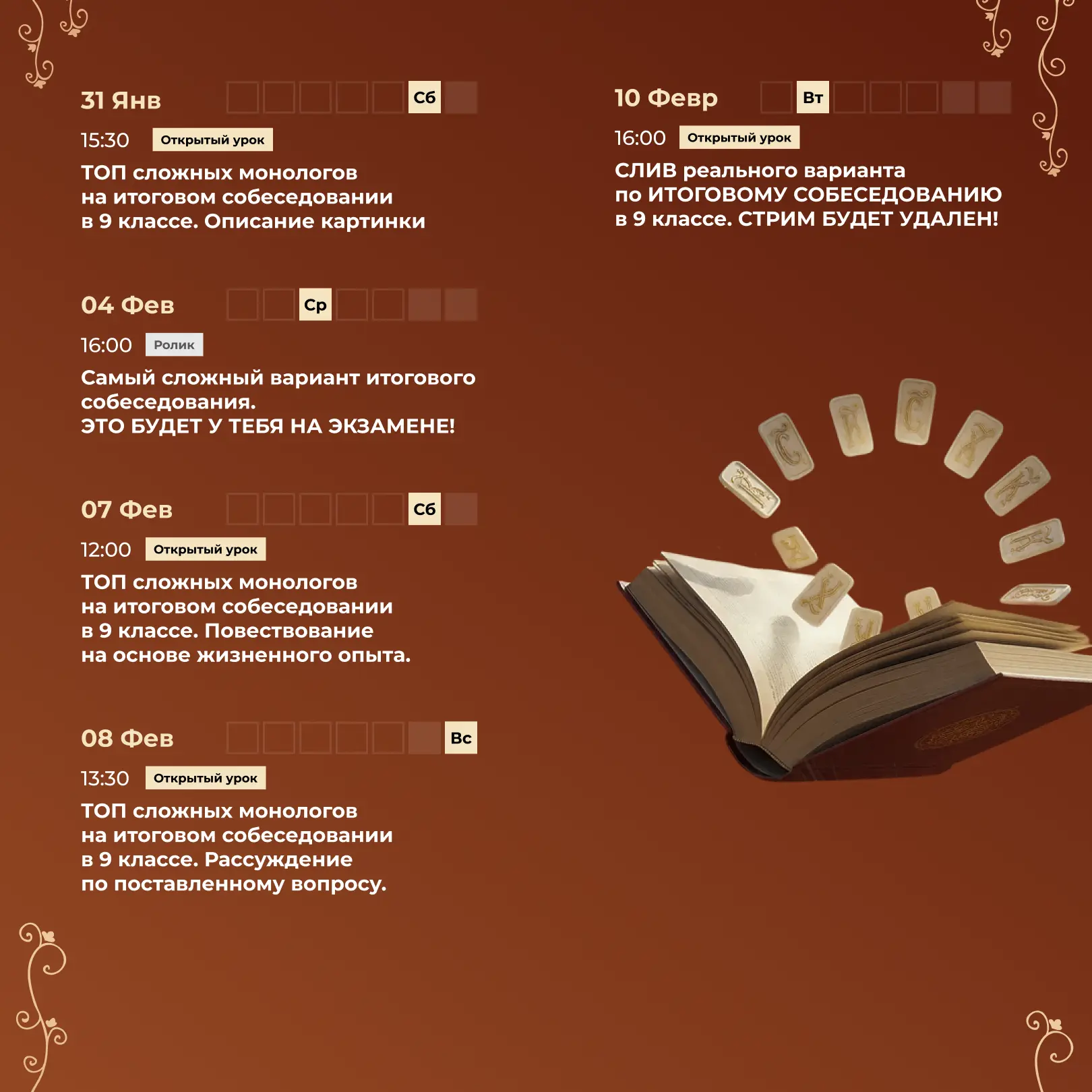 ✔7 вебинаров с теорией и практикой по итоговому собеседованию