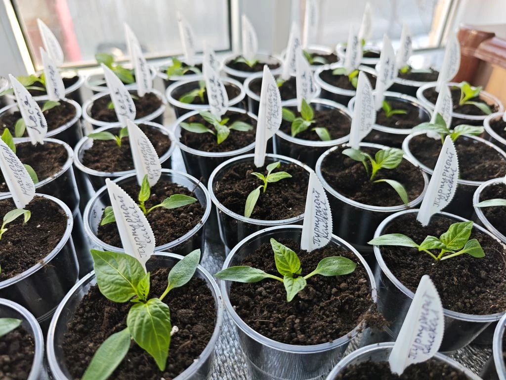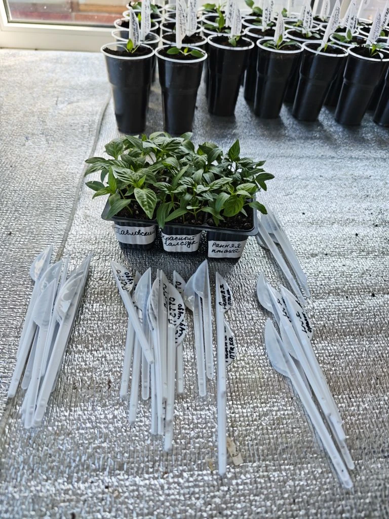 Сегодня распикировала сладкие перцы 45 сортов, получилось около 300 шт.