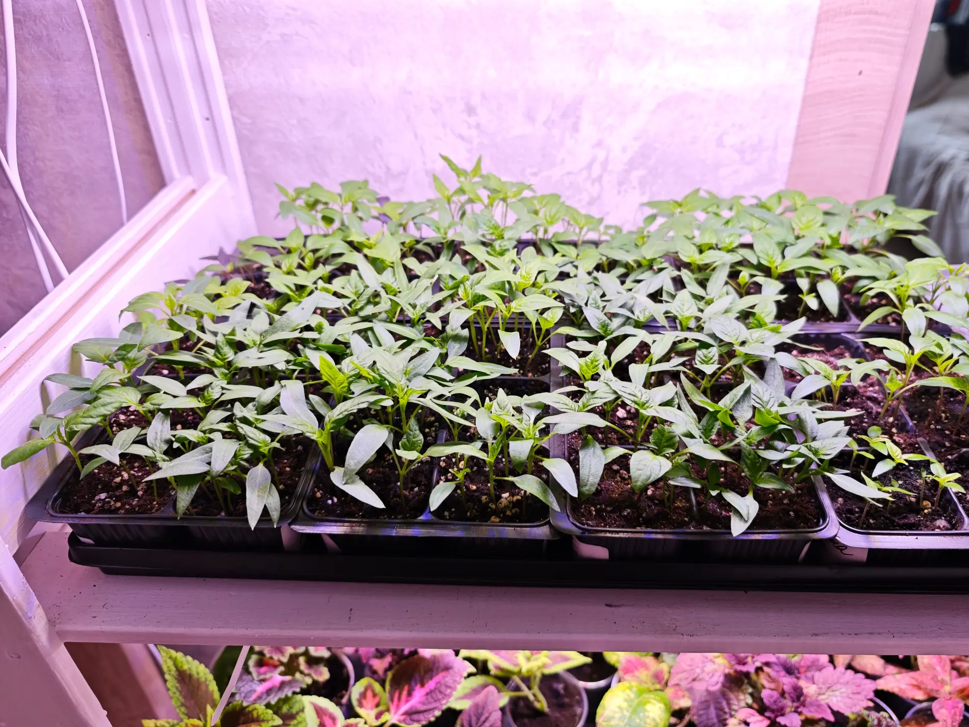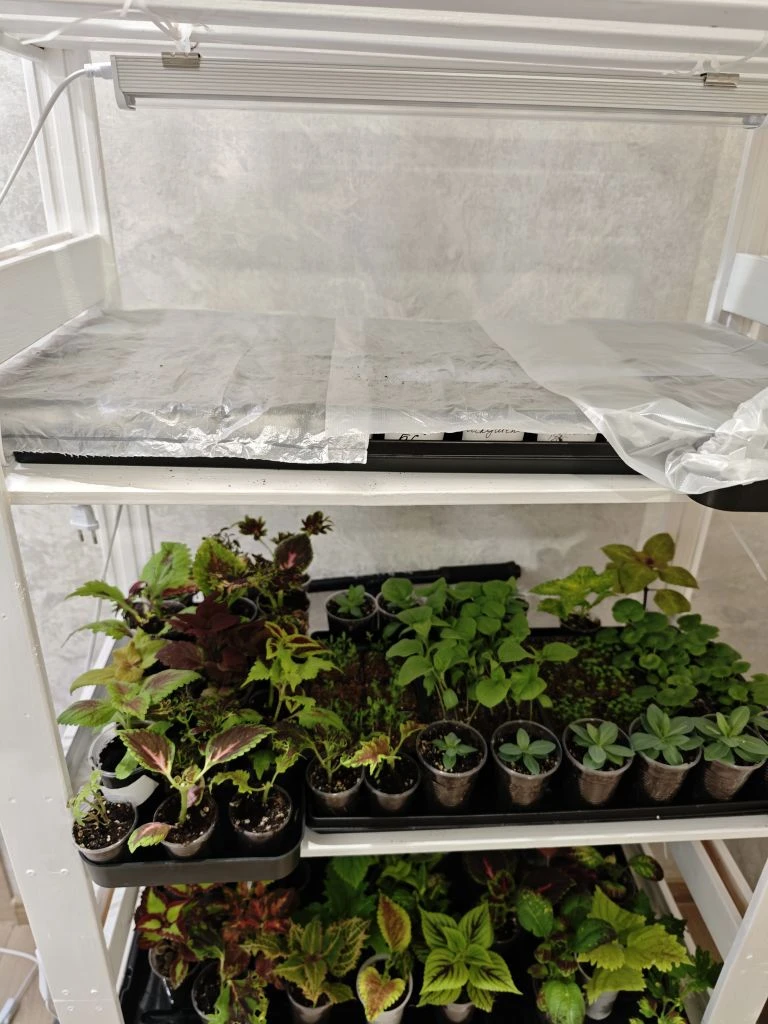Посевы ставлю на самые верхние полки на стеллажах.