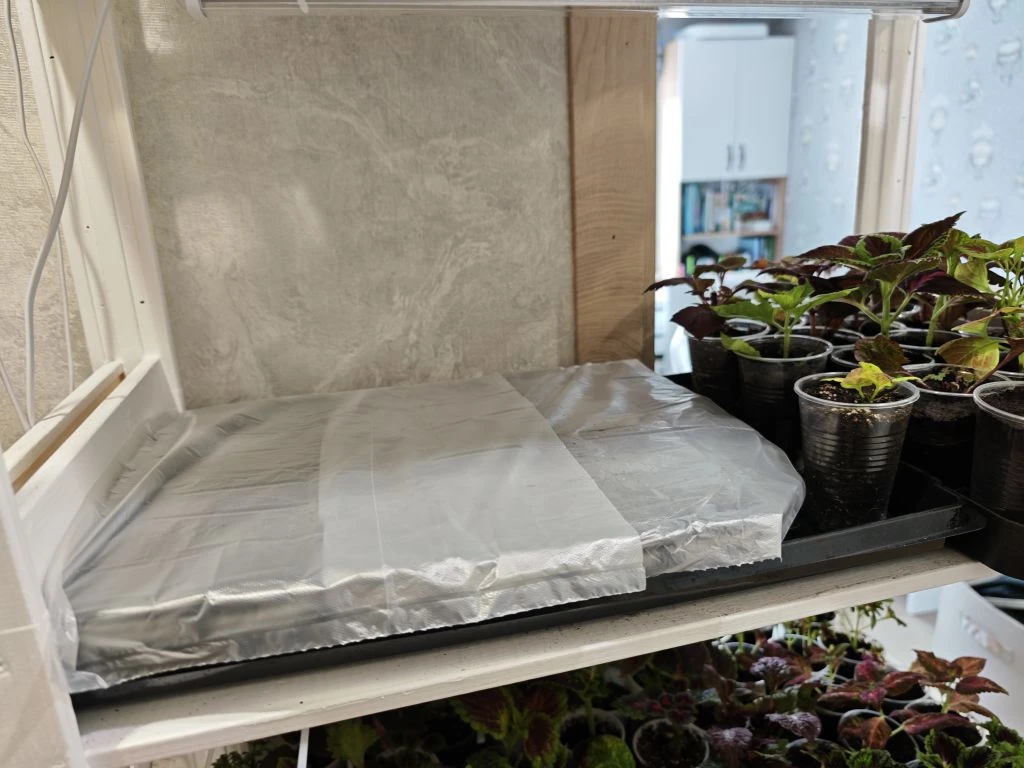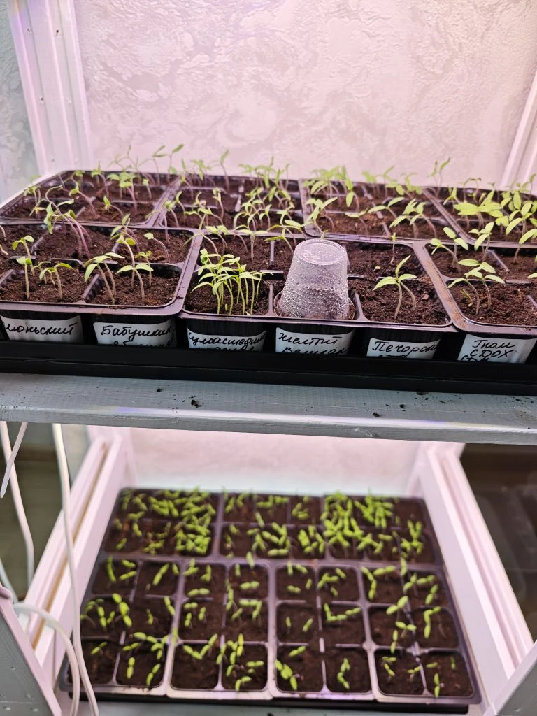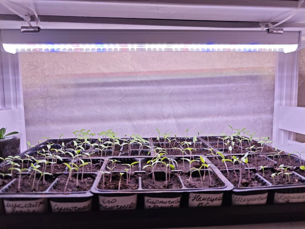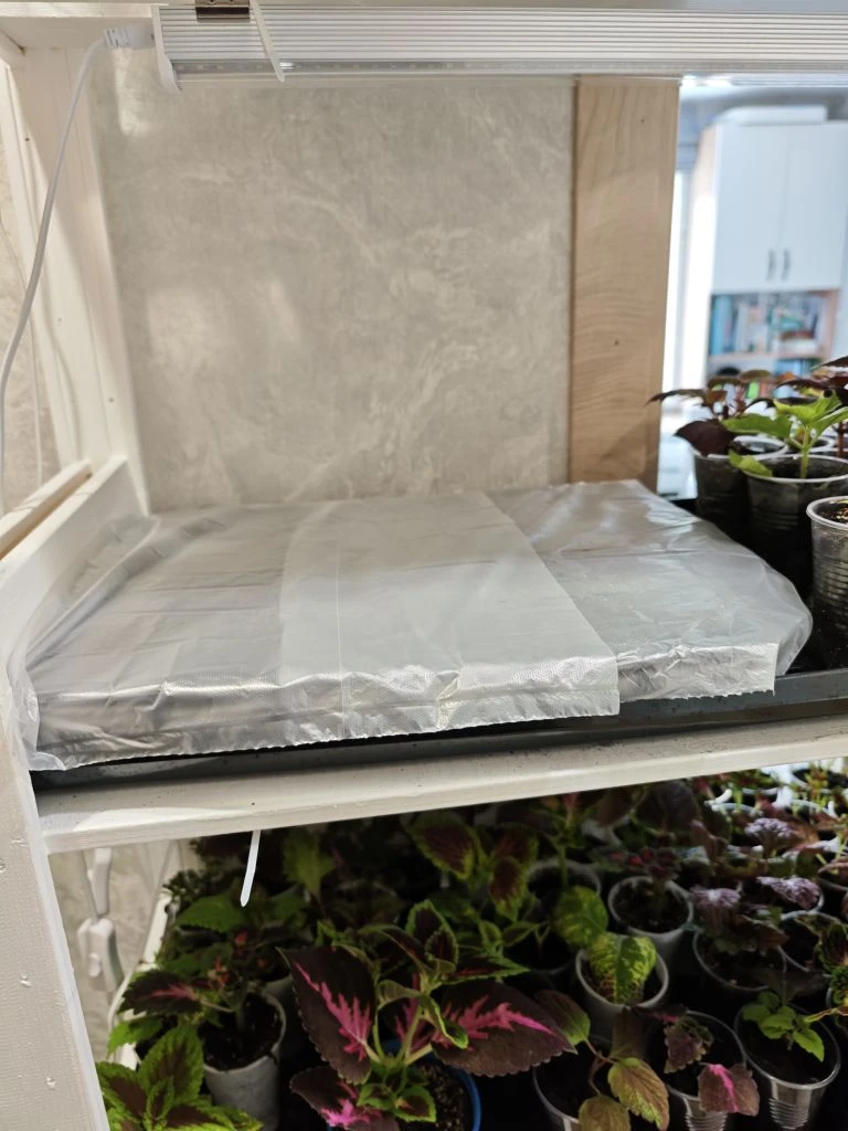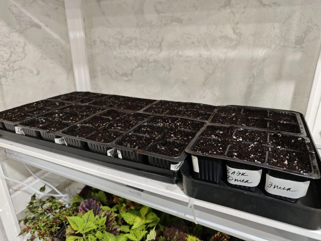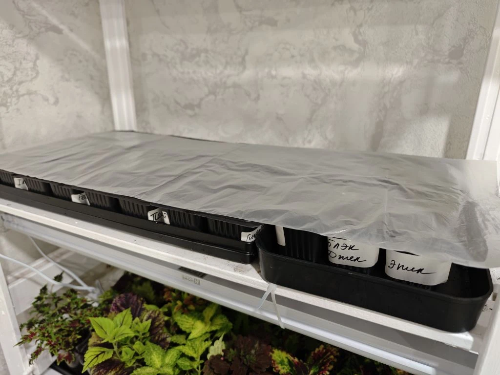 Посевы поставила на самую верхнюю полку на стеллаж, там жарко.