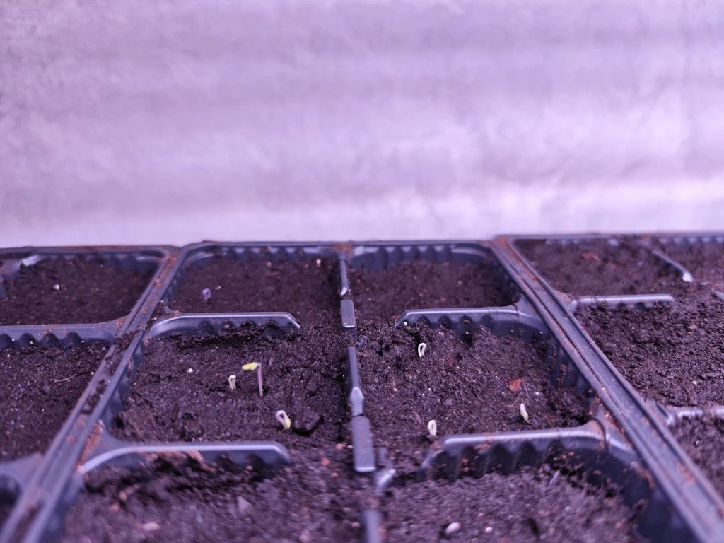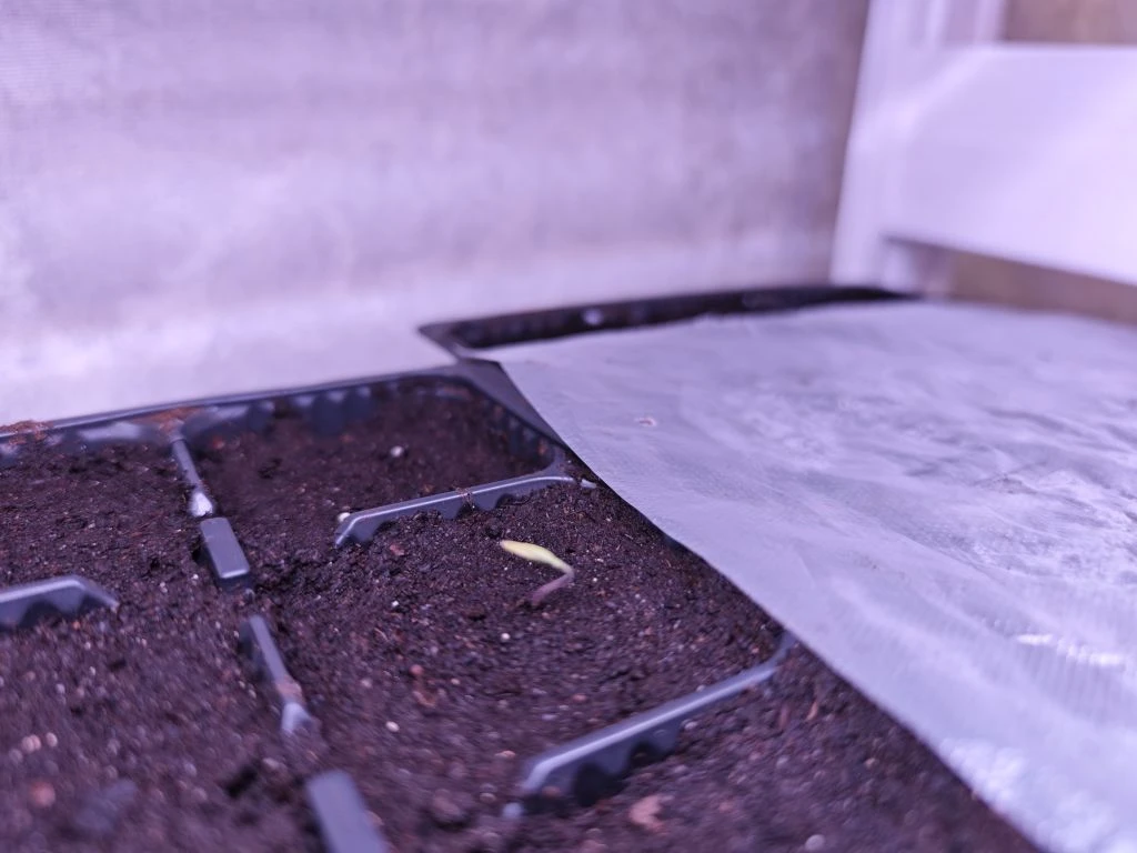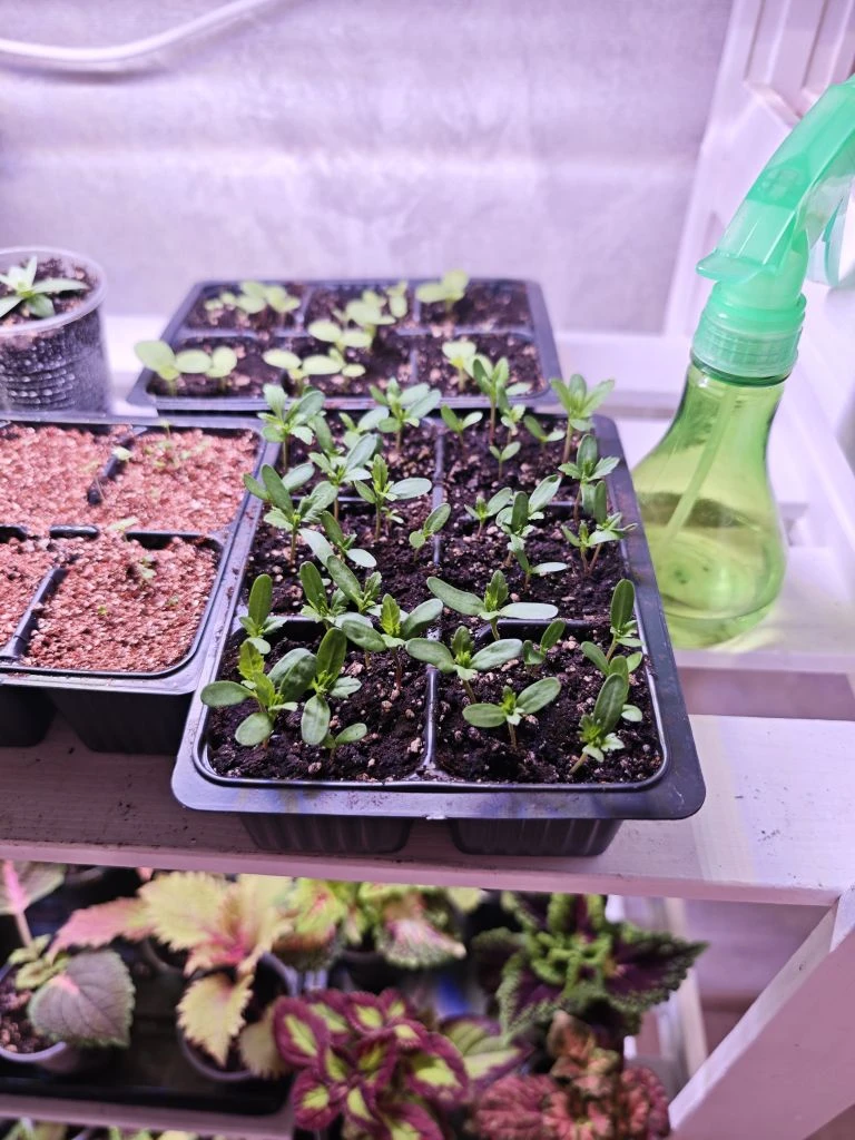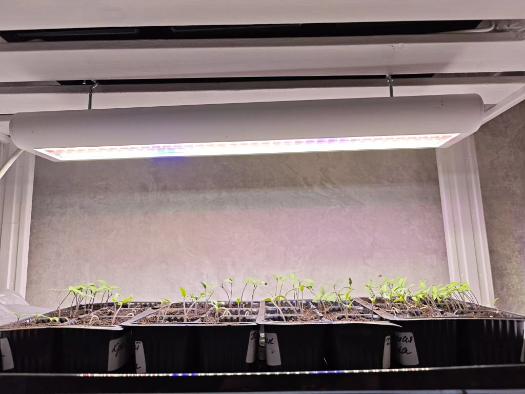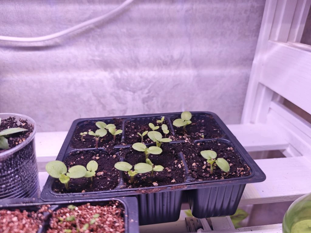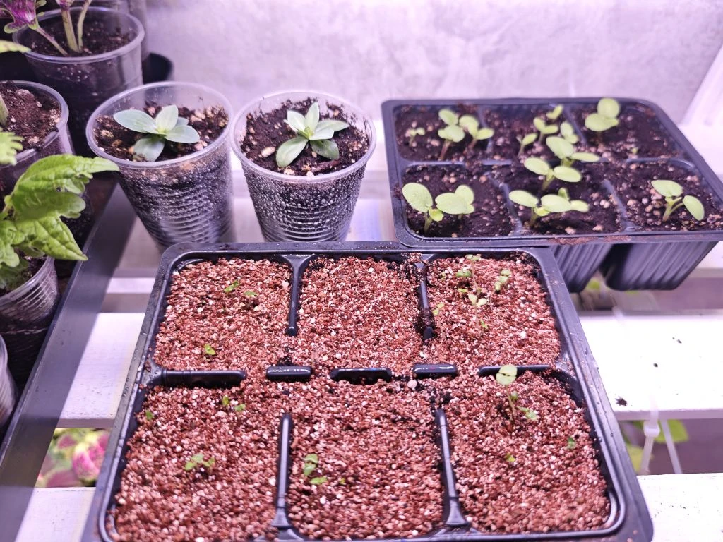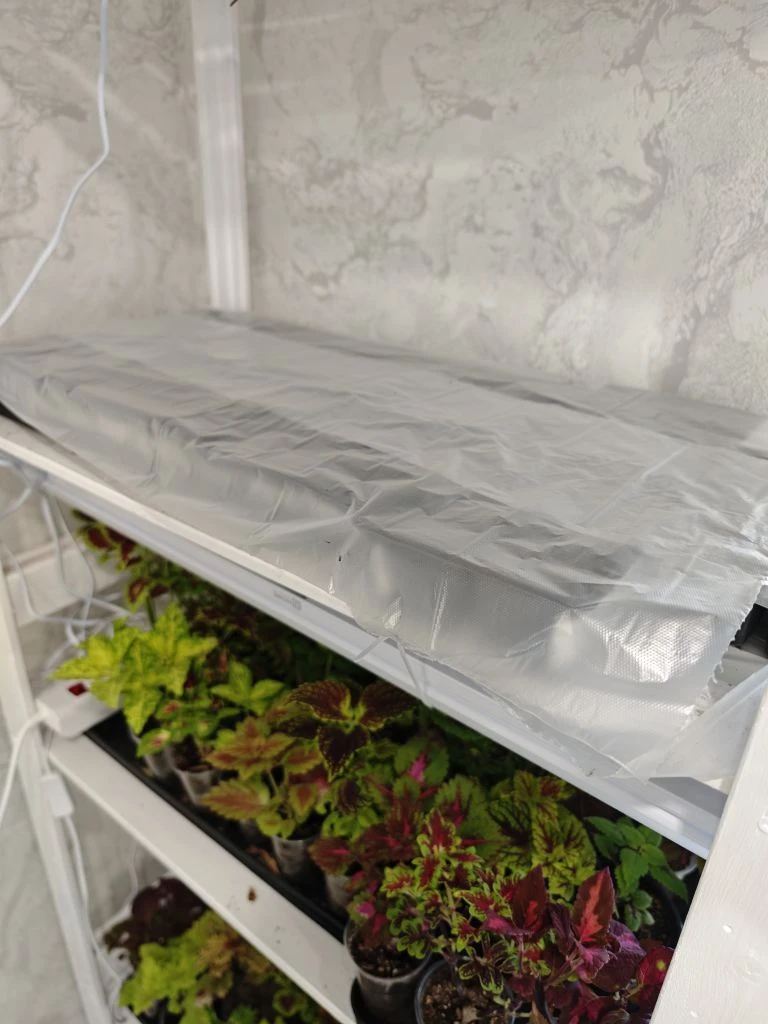Посевы поставила на самую верхнюю полку на стеллаж, там жарко.