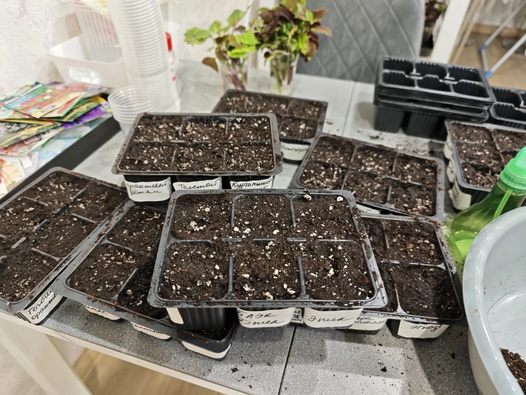 Сегодня посеяла вторую партию сладкого перца и острый перец.