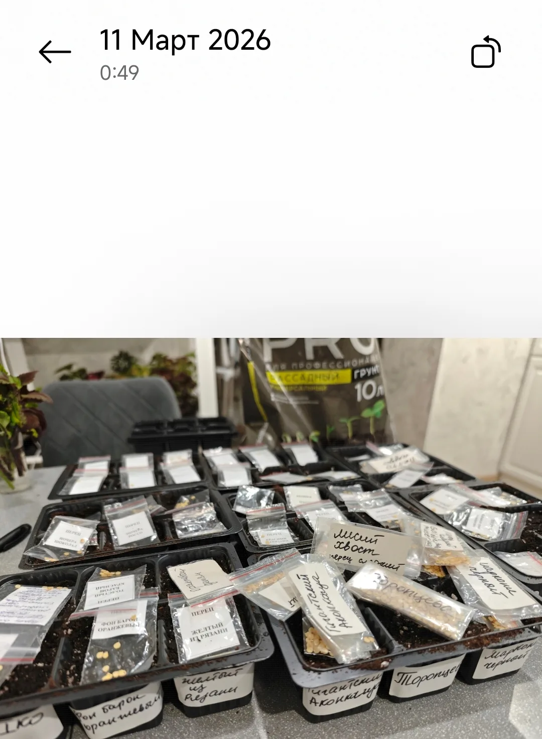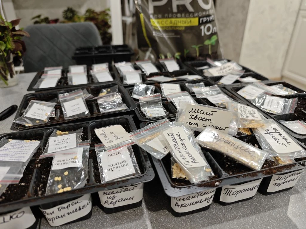 Вчера посеяла 45 сортов перцев и 3 гибрида баклажанов.