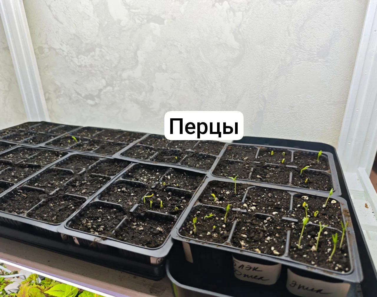 21 марта сеяла перцы, сегодня появились первые всходы.