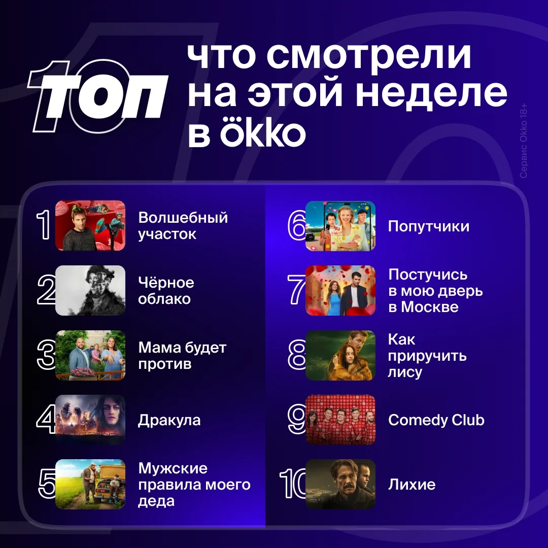 🔝 «ВОЛШЕБНЫЙ УЧАСТОК» и «ЧЁРНОЕ ОБЛАКО» в топе самых популярных проектов этой недели.