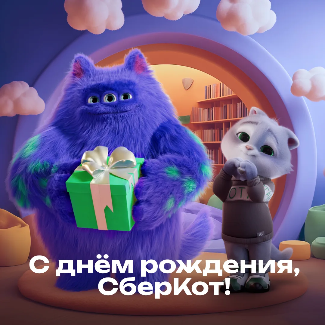 Сегодня пушистому маскоту Сбера исполняется 8 лет — уже совсем большой котик! 🐾