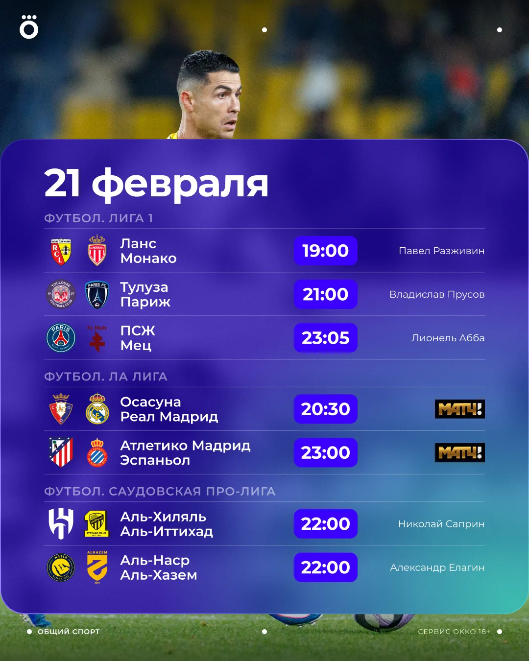 📄 Лови субботнее расписание. Очень много футбола.