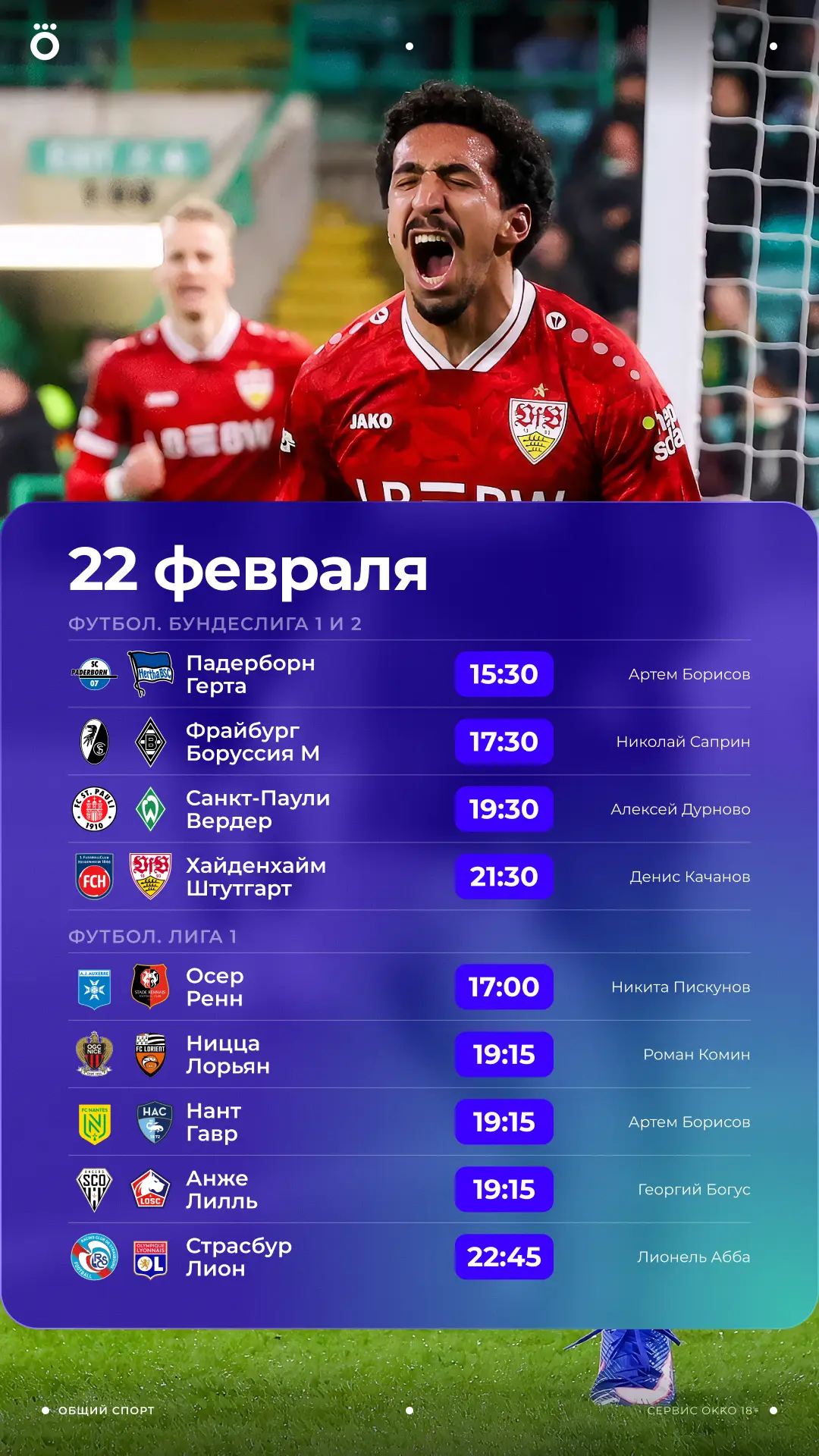 В это воскресенье следим не только за Олимпиадой. Бундеслига 1 и 2, Лига 1, Вечное дерби в Сербии и другие трансляции 🔥