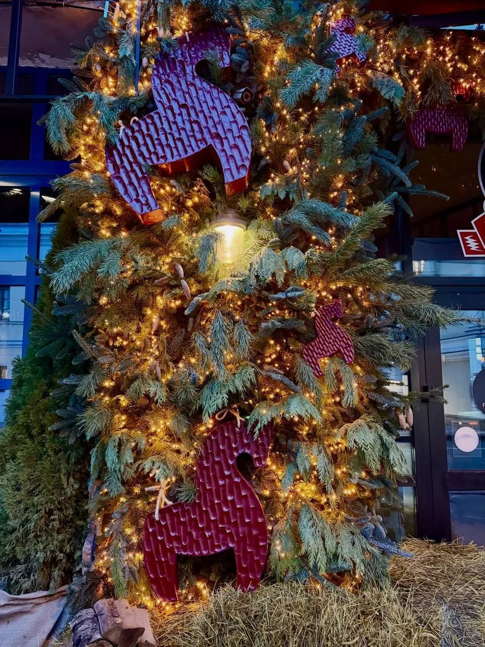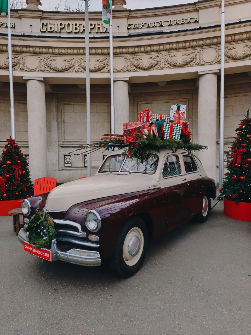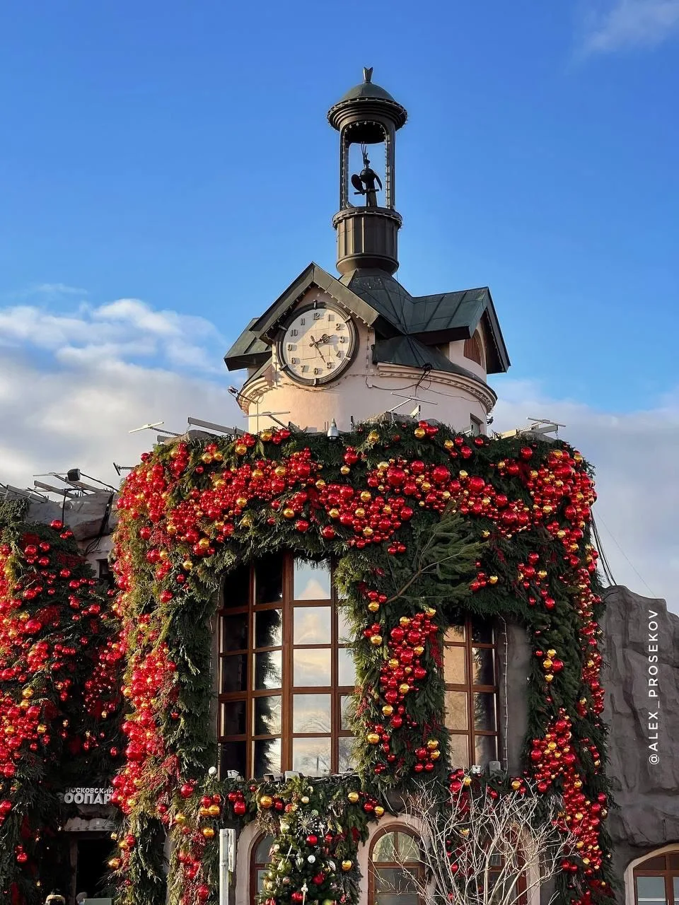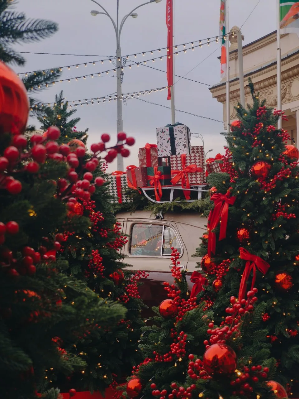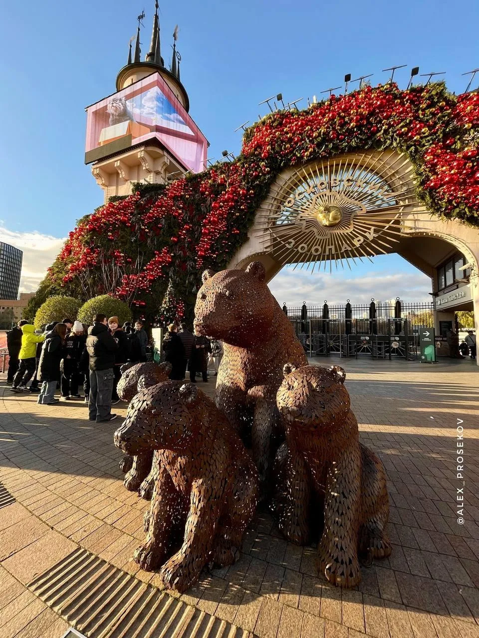 🎄Входную зону Московского зоопарка украсили к Новому году игрушками и еловыми ветками.