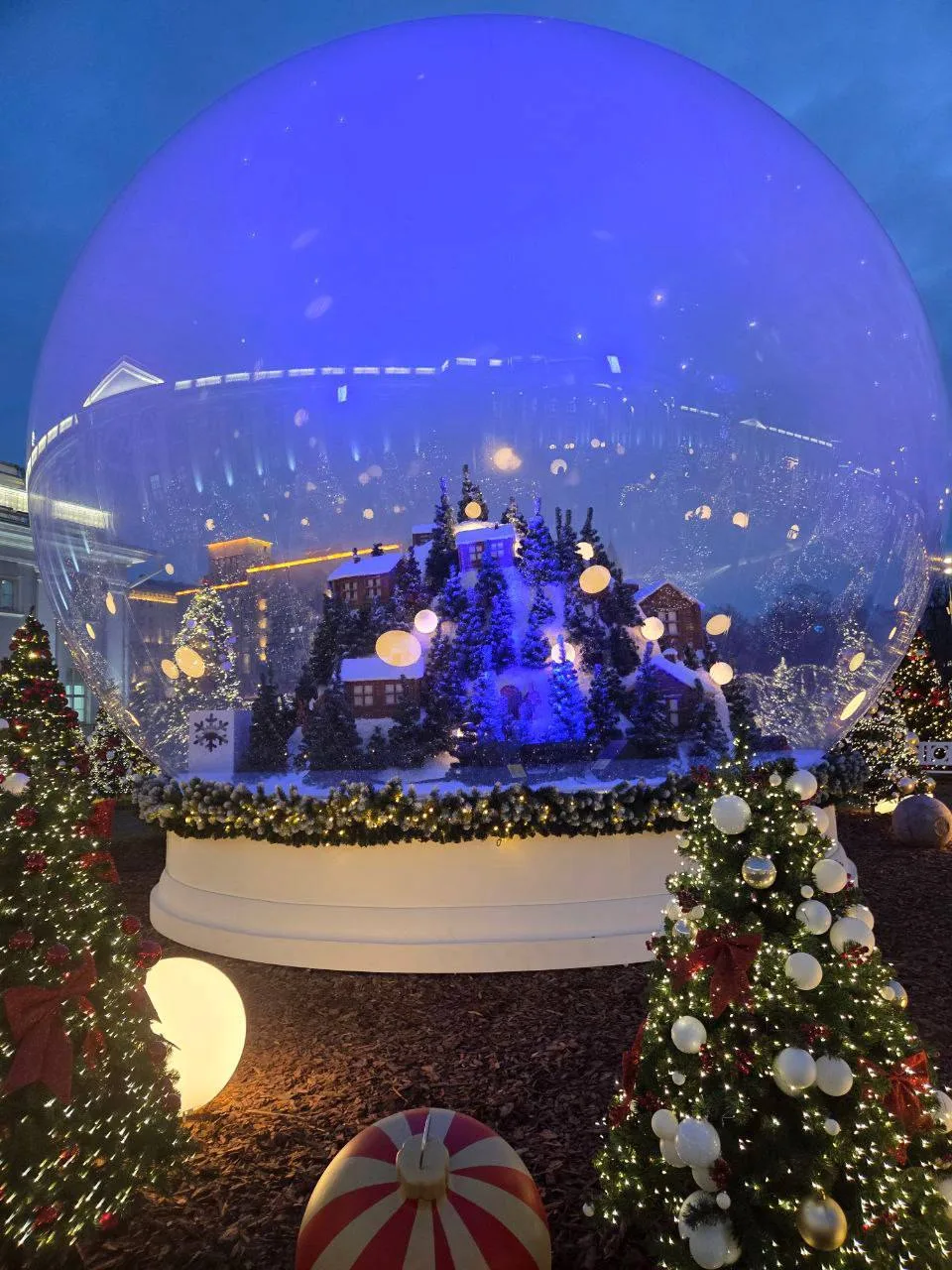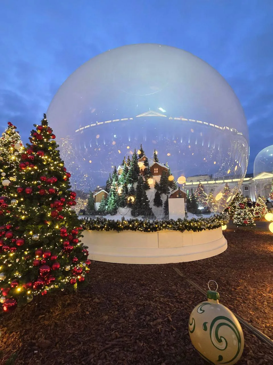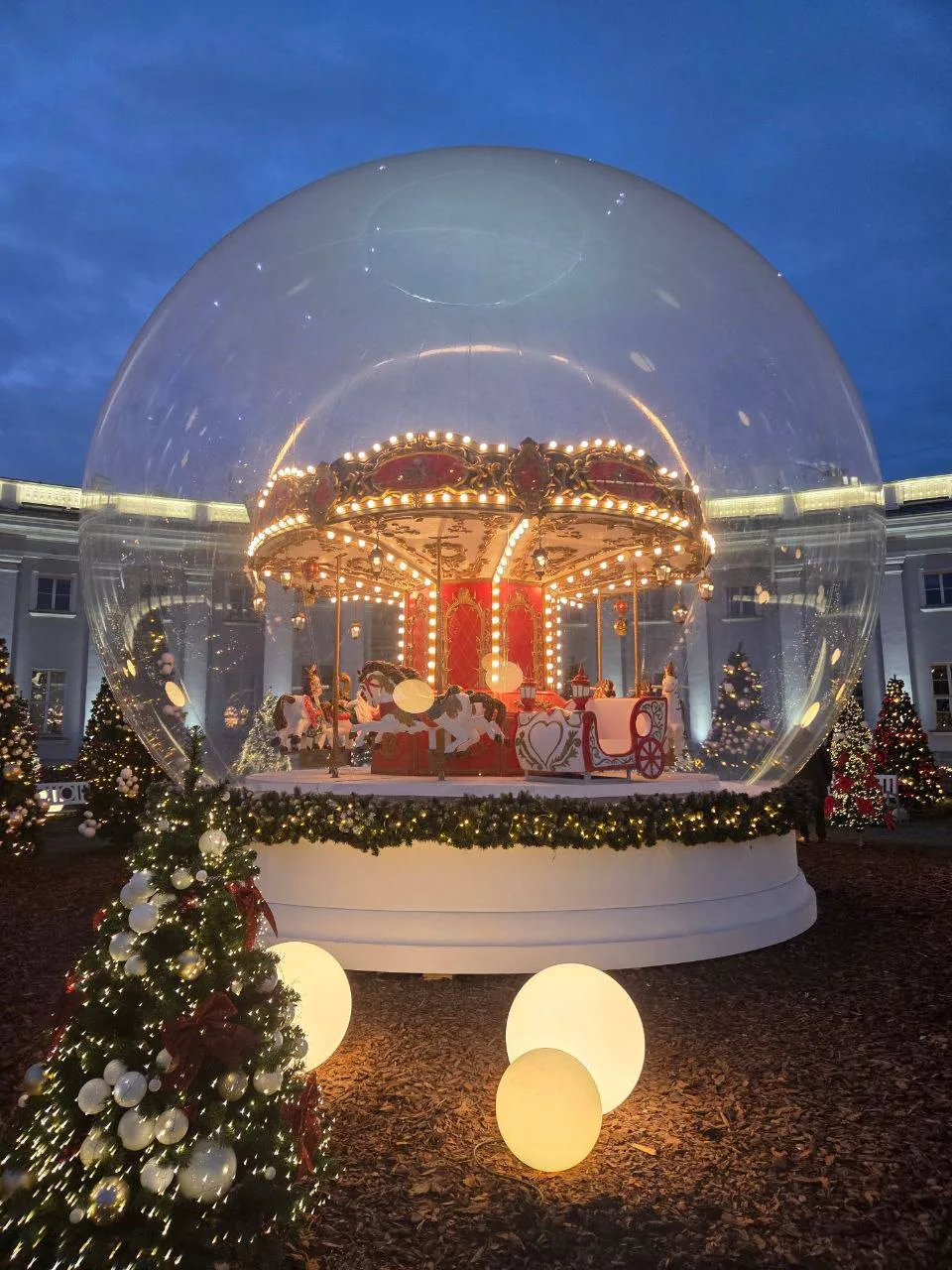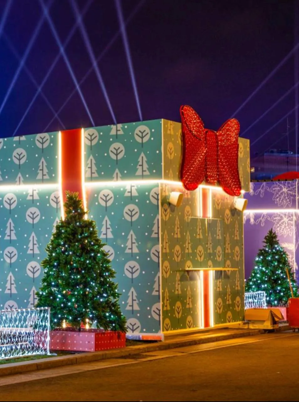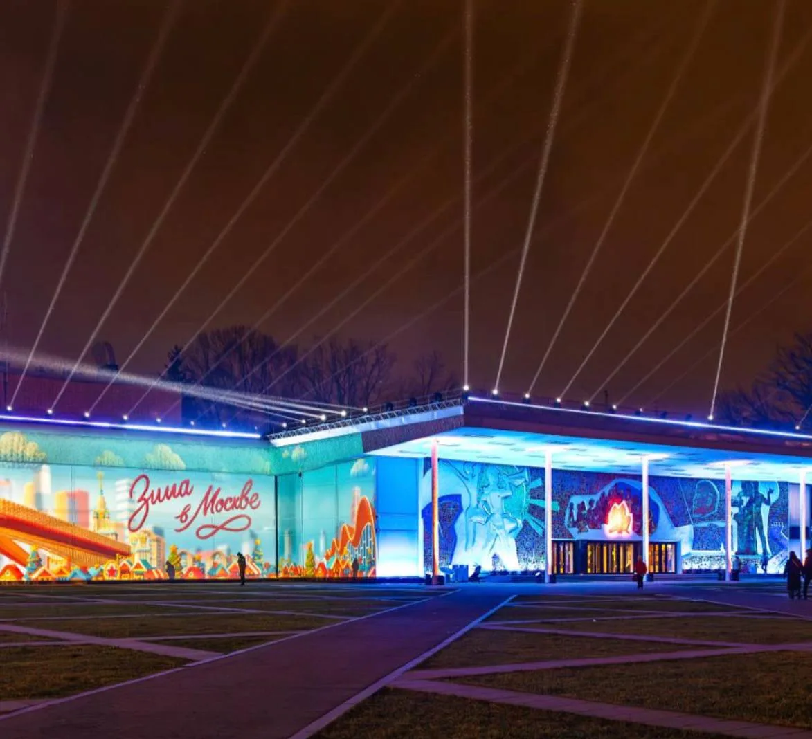 Ежедневно гостей будет ждать вечернее световое шоу — фасад и пространство вокруг главного здания станут мультимедийной сценой, на которой свет, звук и проекции объединятся в праздничные сюжеты зимних сказок.