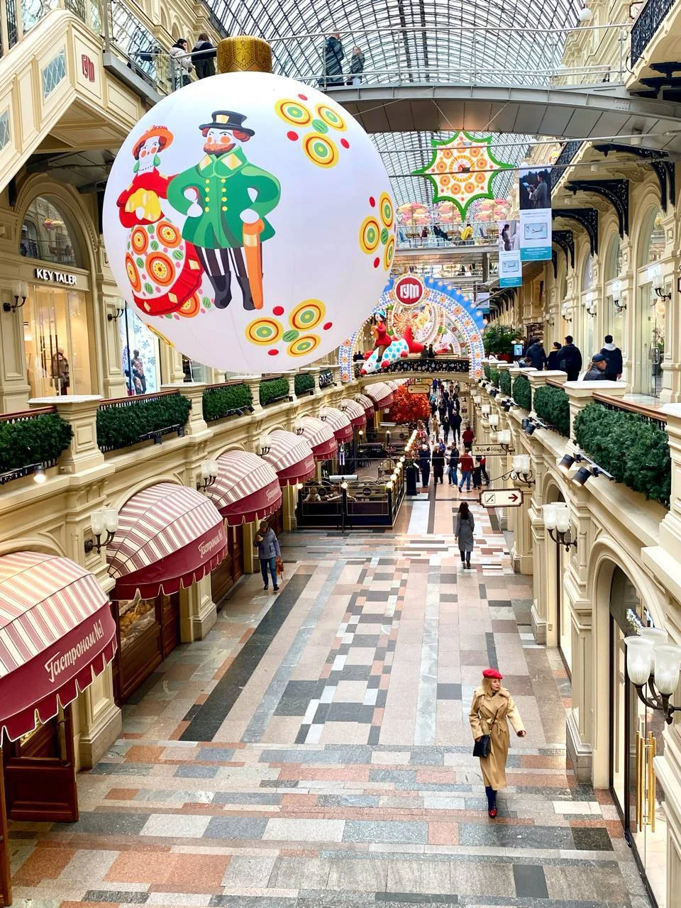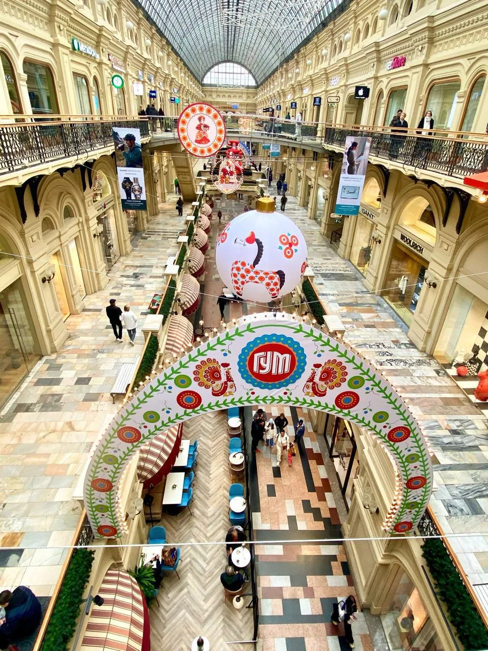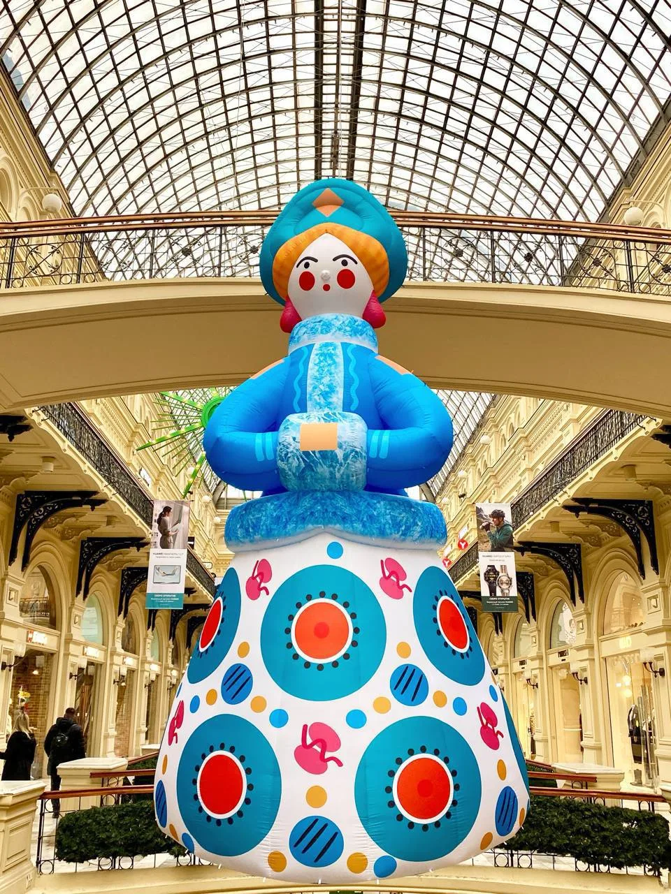 В этом году к Новому году ГУМ украшен в духе народных дымковских игрушек