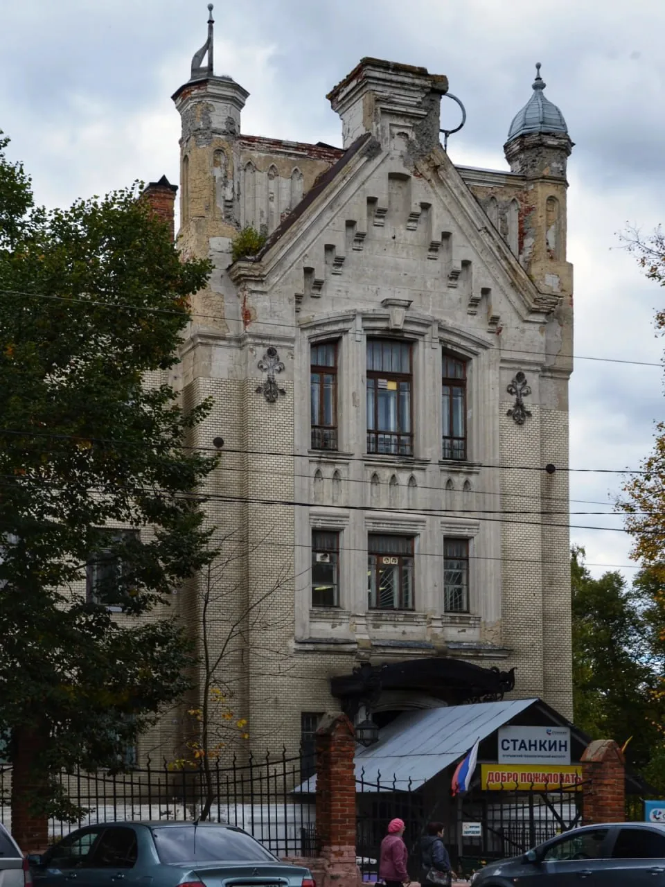 Здание выглядит потрясающе. Готические башни, красивая плитка на фасаде, а если повезёт попасть внутрь — прекрасный модерн с фонарями и вывесками начала ХХ века.