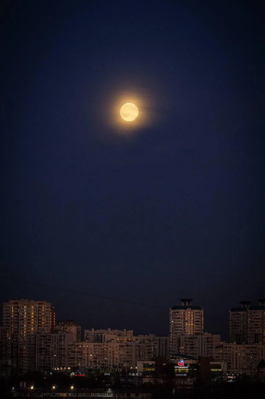 Бобровое суперлуние этой ночью в небе над Москвой.