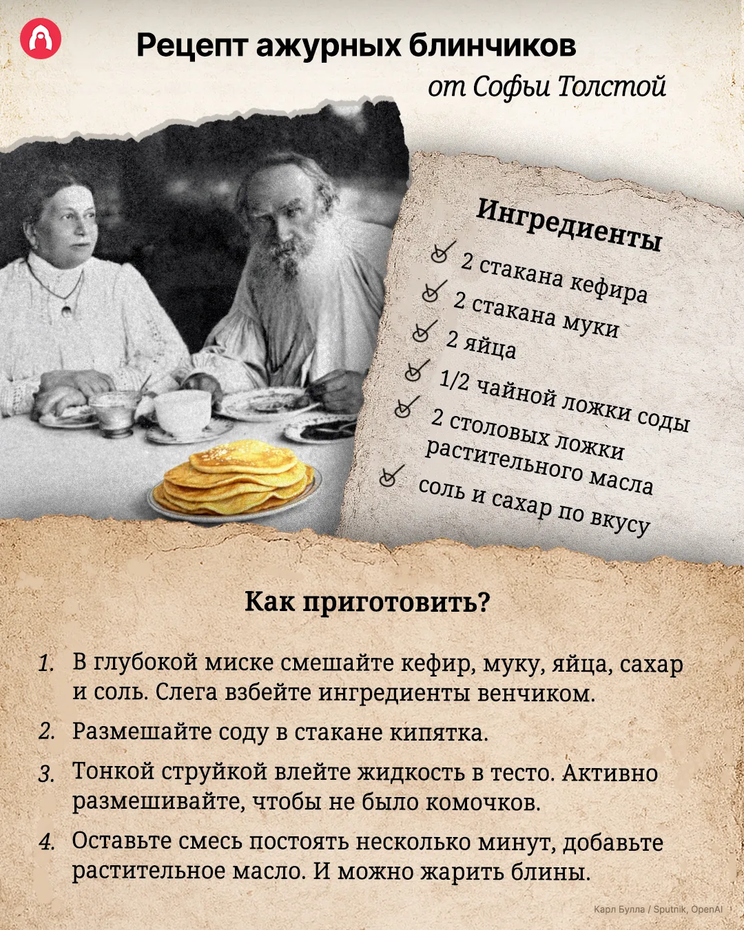 Масленица в самом разгаре 🥞 Вот какие блины пекла великому Толстому его жена.