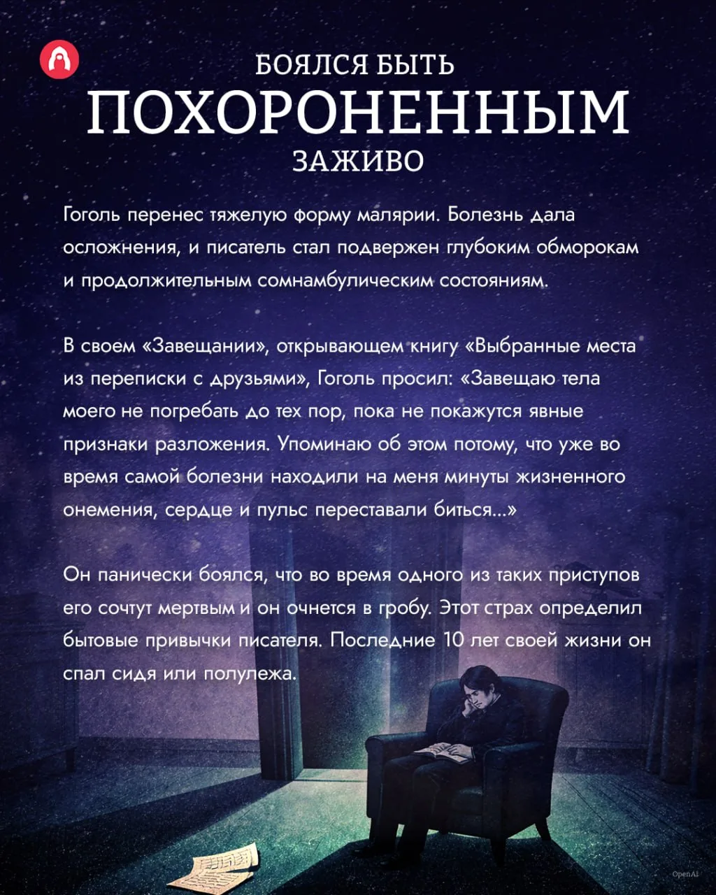 Приводим некоторые факты из жизни Гоголя, записанные с его слов! Верим? 🧐