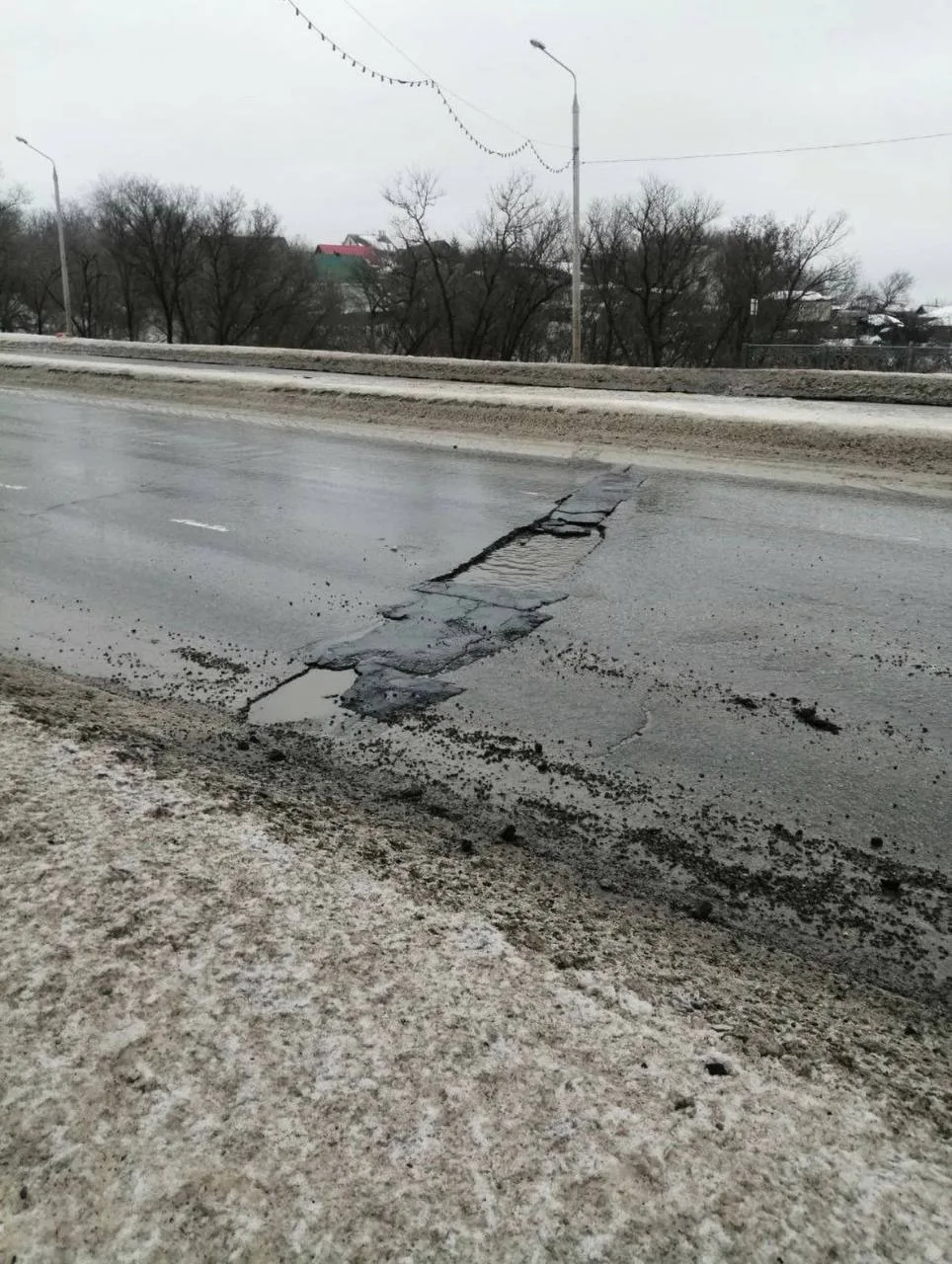 😒На путепроводе в сторону микро вместе со снегом растаял и асфальт.