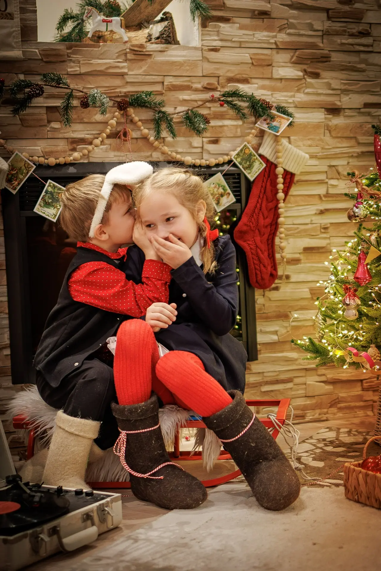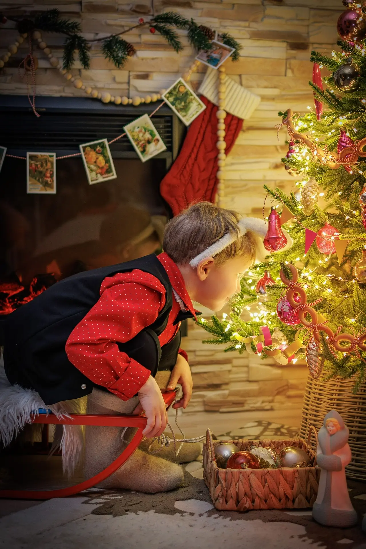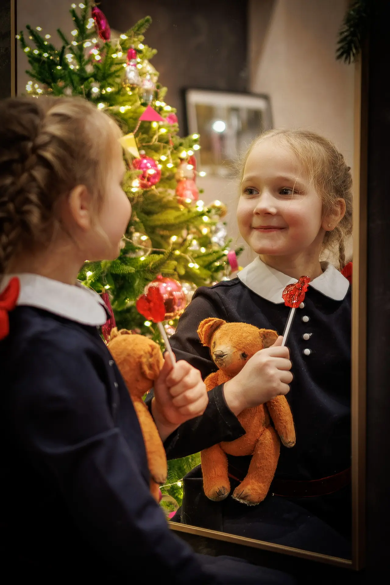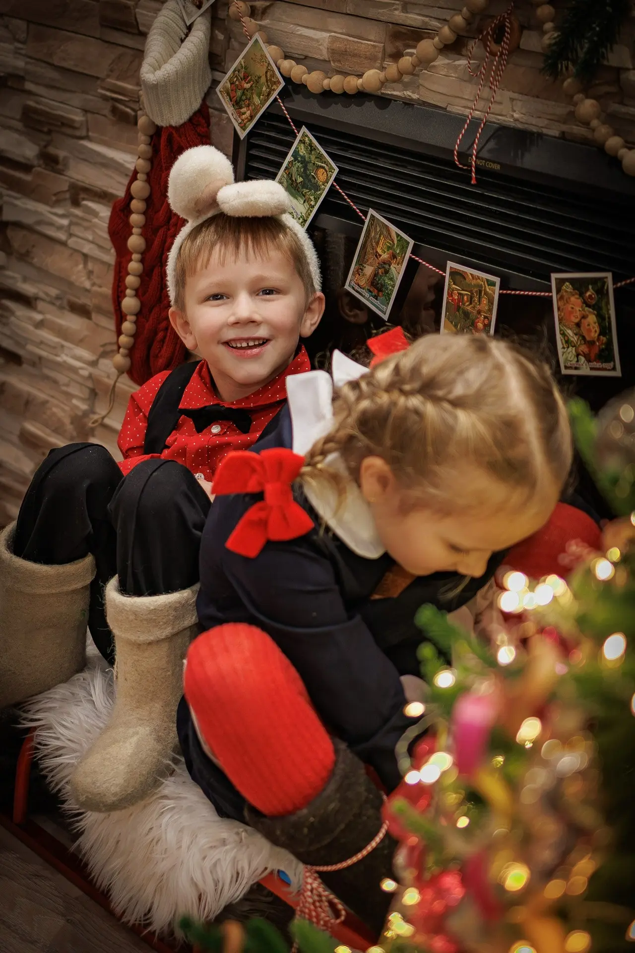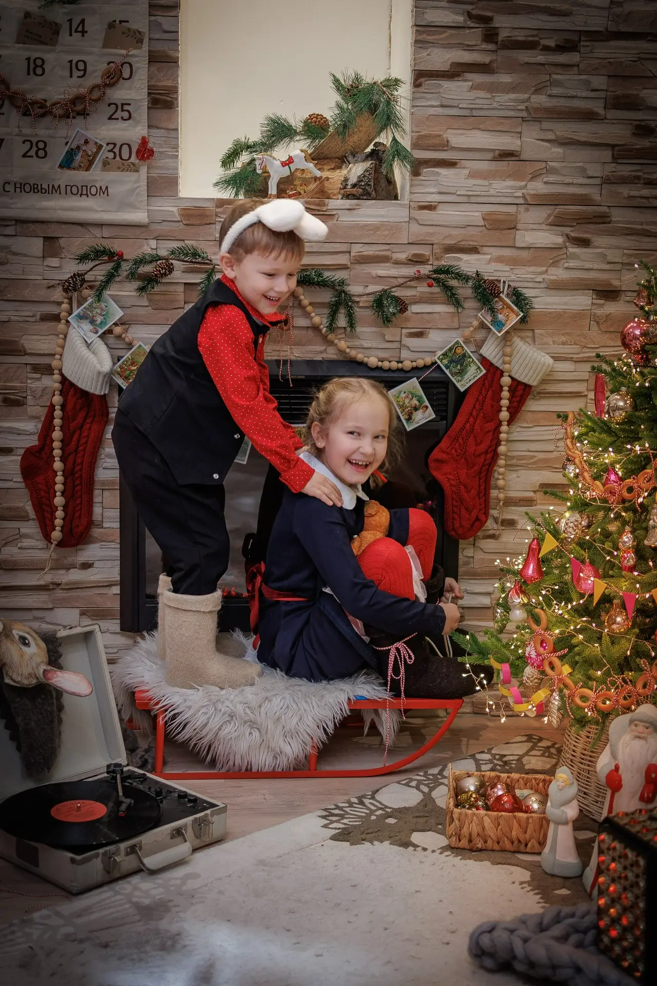 У нас было всего 10 минут, но мы устроили миниатюрную фотосессию с нашей елочкой, украшенной ретро-игрушками. На большее уговоры на Мишу не подействовали, впрочем, как и всегда. Зато подурачиться дети готовы всегда и везде!