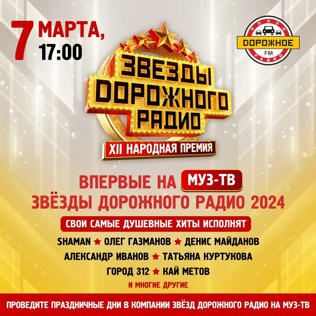 📍Проведите праздничные дни в компании звёзд «Дорожного радио» на МУЗ-ТВ. Встречаемся на канале 7 марта в 17:00.