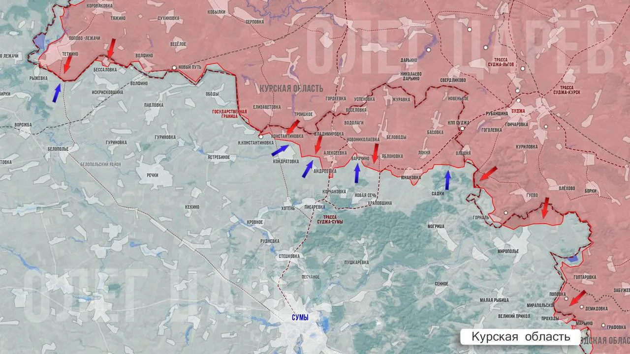 ▪️В Сумском приграничье ВС РФ с тяжелыми боями прорывается в районе Алексеевки. Восстановлен контроль над Варачино. Поражены позиции ВСУ в районе Андреевки, Павловки, Новой Сечи и Садков.