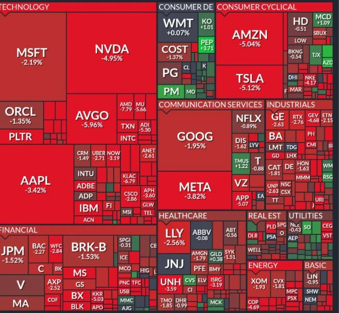 После заявления Трампа о возможном введении дополнительных пошлин в 100% на импорт из Китая американские фондовые индексы резко упали: S&P 500 — на 2,7%, Nasdaq 100 — на 3,5%. Доллар ослаб, нефть потеряла более 4%, криптовалюты снизились на 1–7%.