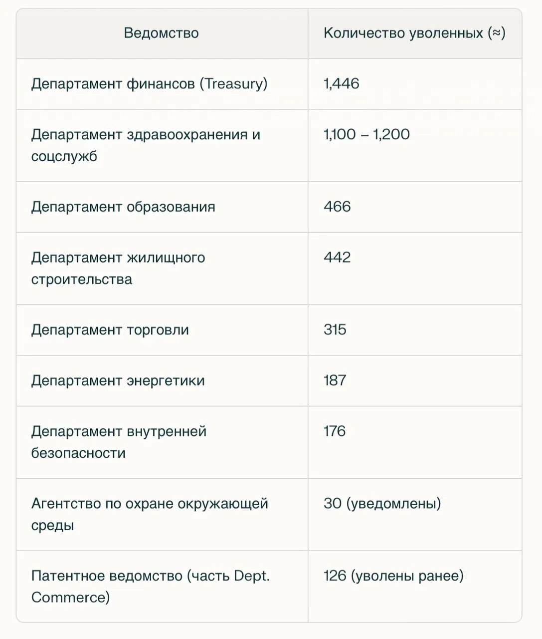 Высокопоставленный представитель администрации сообщил СМИ, что эти цифры — «лишь моментальная картина». «Будут новые RIF», — сказал чиновник. RIF (Reduction in Force) — это официальный термин правительства США, обозначающий процедуру массового сокращения.
