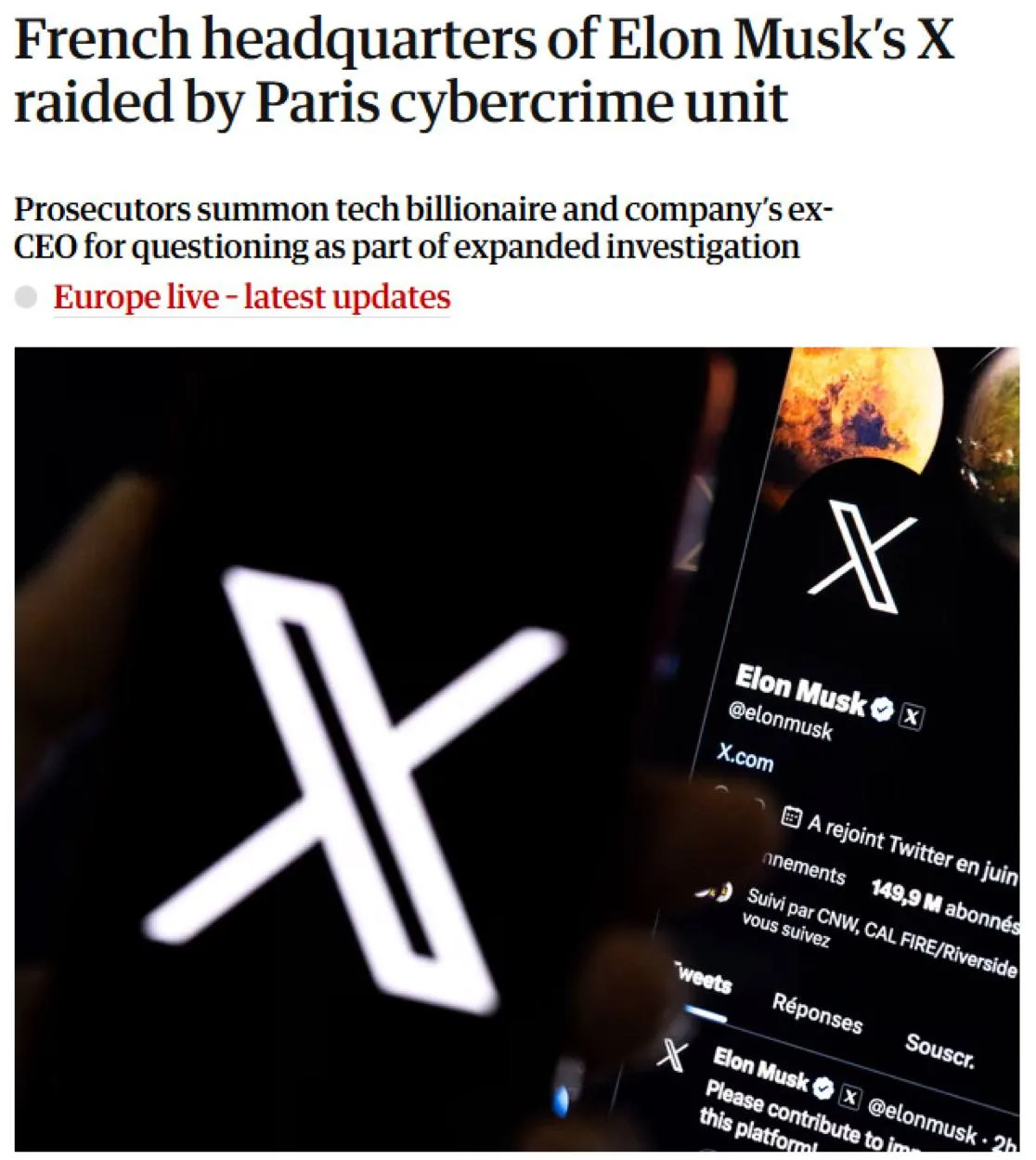 Франция вызвала Илона Маска на «добровольное интервью» и параллельно провела обыски в штаб‑квартире X.