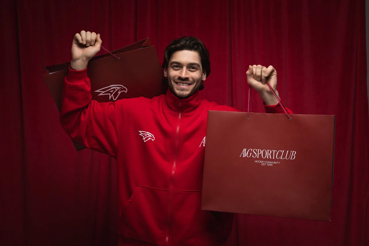 К Новому году клуб выпустил коллекцию праздничного мерча. Первыми на себе её опробовали игроки «ястребов» и их жёны с детьми.