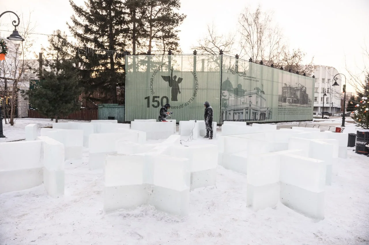 Сейчас в новогодней локации устанавливают еловые арки, создают ледяной лабиринт, зеркальный куб и другие фигуры. Каток будет находиться на участке по улице Партизанской, рассказал зампред правительства Омской области Иван Колесник.