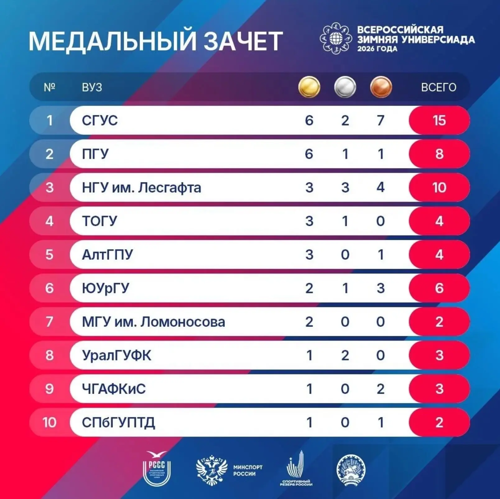 Поздравляю студентов ПГУ, которые принесли команде нашего региона 6 золотых, 1 серебряную и 1 бронзовую награду на IX Всероссийской зимней универсиаде, проходившей в Республике Башкортостан.