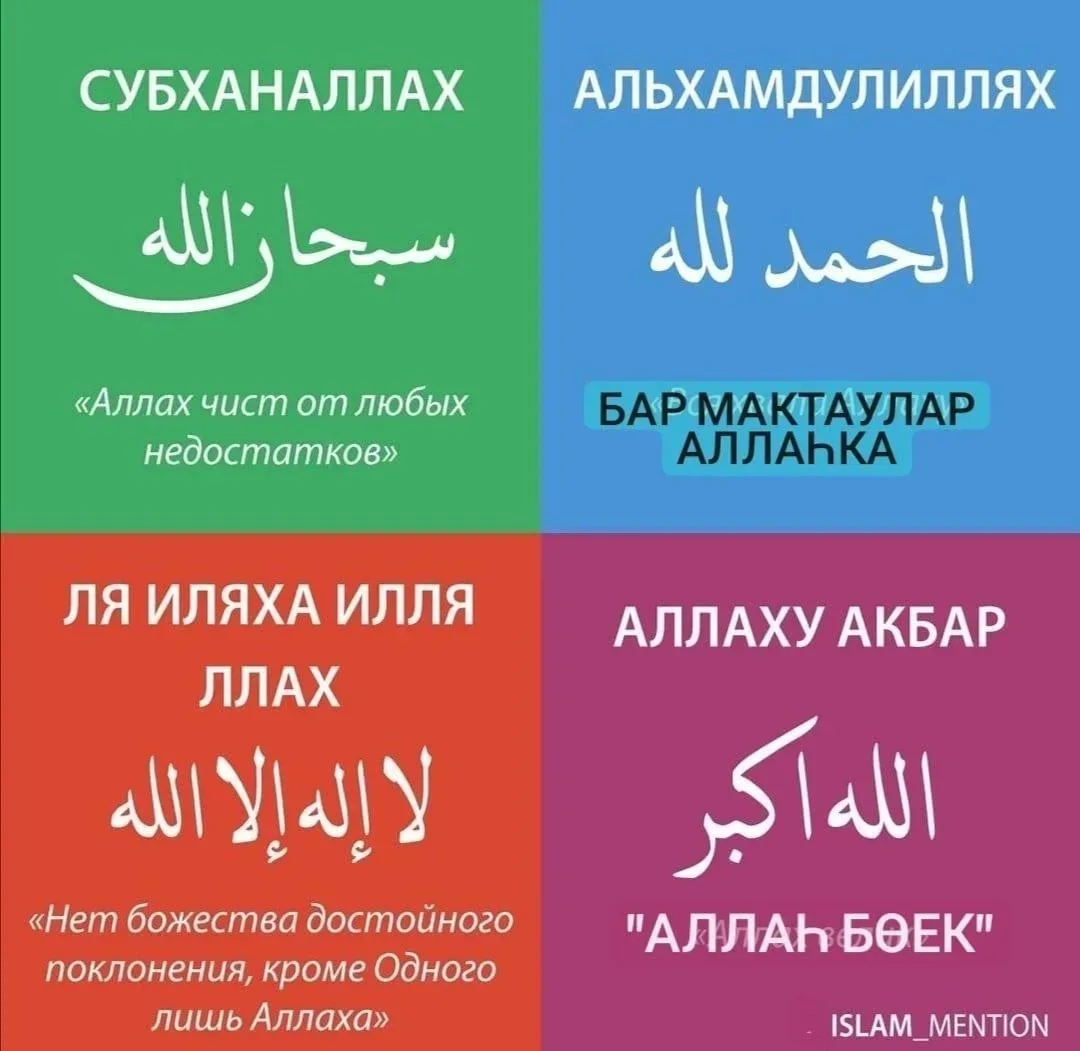 «СөбһанАллаһ» - “Бар мактаулар Аллаһка гына”, “Һәр кимчелектән пакъ Аллаһ” дигәнне аңлата. Соклану, аптырау, гаҗәпләнү хисләрен белдерә.