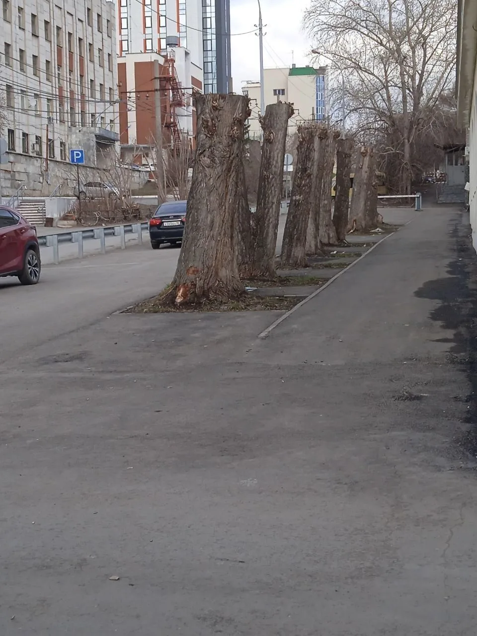 Карательную обрезку здесь практикуют уже много лет — деревьям не дают вырасти выше этих обрубков. Вопрос — зачем тогда они вообще нужны?