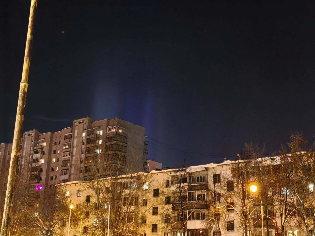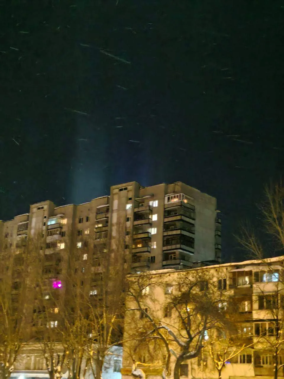 Уральцы наблюдают за окном световые столбы