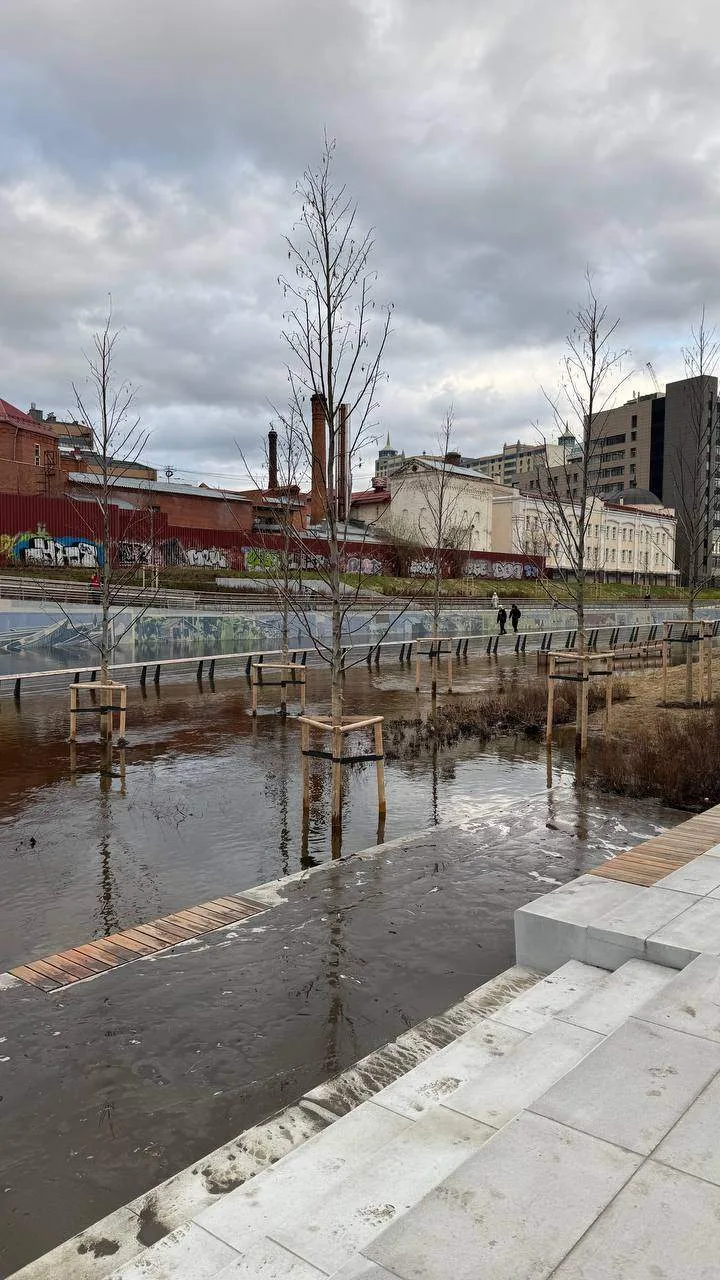 Новая набережная Екатеринбурга в районе УГМК арены ушла под воду