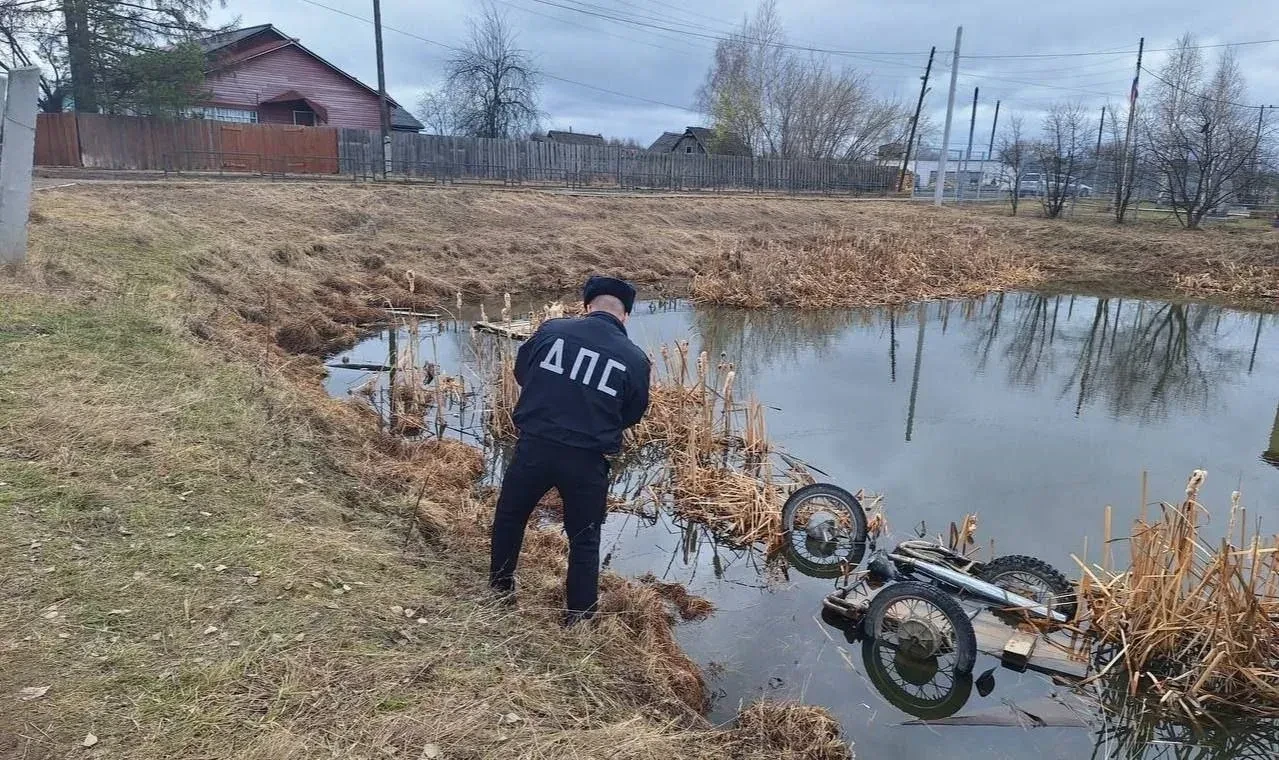 Вечером 7 апреля 48-летний мужчина на мотоцикле «ИЖ Планета» не справился с управлением, съехал в кювет и опрокинулся в пожарный водоём.