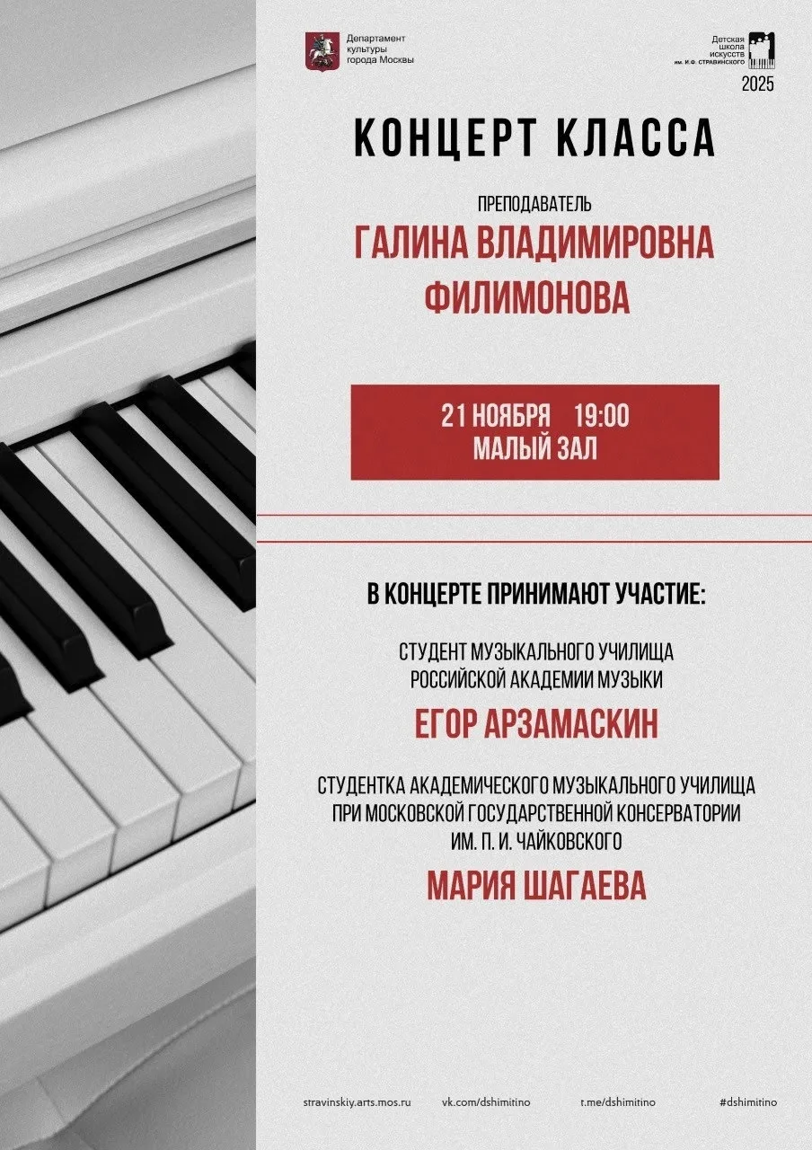 📍Мероприятие пройдет в Малом зале ДШИ им. И.Ф. Стравинского по адресу: ул. Митинская, д. 47, корп.1